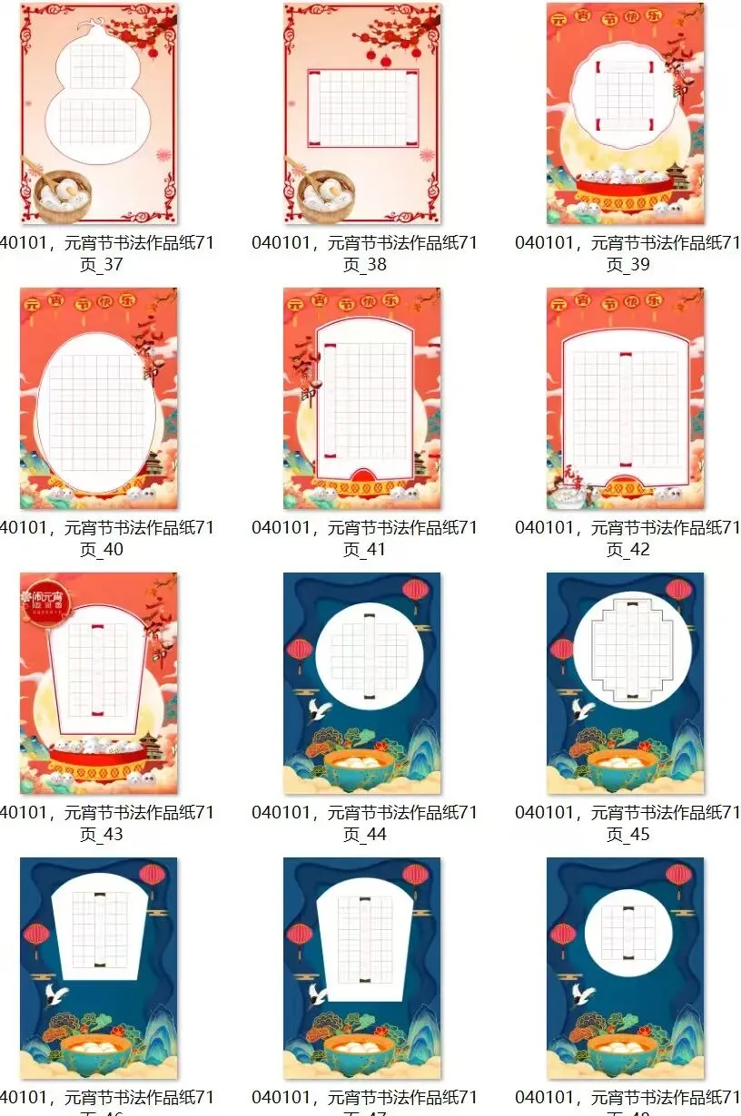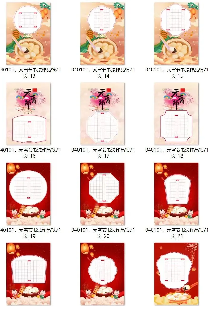 元宵节主题书法作品纸,高清无水印电子版,共71张.欢迎收藏转发