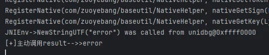 复制代码 隐藏代码functionhook_java() {Java.perform(function () {letNativeHelper = Java.use("com.zuoyebang.baseutil.NativeHelper");NativeHelper["nativeGetSign"].implementation = function (str) {console.log(`NativeHelper.nativeGetSign is called: str=${str}`);let result = this["nativeGetSign"](str);console.log(`NativeHelper.nativeGetSign result=${result}`);return result; }; })}hook_java()