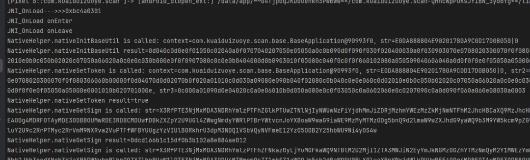 复制代码 隐藏代码NativeHelper.nativeInitBaseUtil is called: context=com.kuaiduizuoye.scan.base.BaseApplication@90993f0, str=E0DA888804E90201780A9C0D17D0B050|0NativeHelper.nativeInitBaseUtil result=0d040c0d0e0f01050c02040a0f0707040207050e05050a0c0b090d0f090f030f020400030a0f030903070e0708020300070f0f080306060b00000f0d04070d0d02070b0f020a01010c0d030a09080e090b040f02080c0b040c0e0e060c0d02010e0b0c050b02020c07050a06020a0c0e0c030b000e0f0f0907080c0c0e0b0404000d0b0903010f05080c040f0c0f0f060102080a050509040606040a0d0f0f0e0f05050a05000e0001010b020701000eNativeHelper.nativeSetToken is called: context=com.kuaiduizuoye.scan.base.BaseApplication@90993f0, str=E0DA888804E90201780A9C0D17D0B050|0, str2=0d040c0d0e0f01050c02040a0f0707040207050e05050a0c0b090d0f090f030f020400030a0f030903070e0708020300070f0f080306060b00000f0d04070d0d02070b0f020a01010c0d030a09080e090b040f02080c0b040c0e0e060c0d02010e0b0c050b02020c07050a06020a0c0e0c030b000e0f0f0907080c0c0e0b0404000d0b0903010f05080c040f0c0f0f060102080a050509040606040a0d0f0f0e0f05050a05000e0001010b020701000e, str3=0c000a01090d0e04020c0a0e06010b0d050a080e0c0f03050c0a0602060e0c0207090c0a0d090f060a060e08030a0003NativeHelper.nativeSetToken result=true