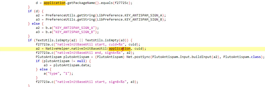 init有两个参数context、cuid均为已知,结果来源未知,而结果后续用到了,所以需要分析算法,记为init_res; -