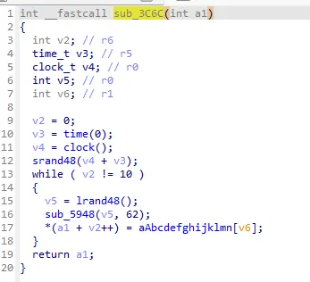 生成随机10位字符串,再看第二个函数 sub_1C18;