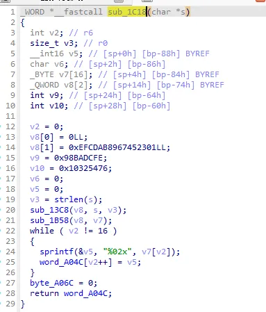 所以这个md5的结果就是固定的,继续看sub_1EF0的参数和返回值;