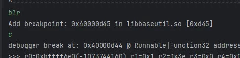 断住后先在控制台敲 blr再按c查看返回值R0;