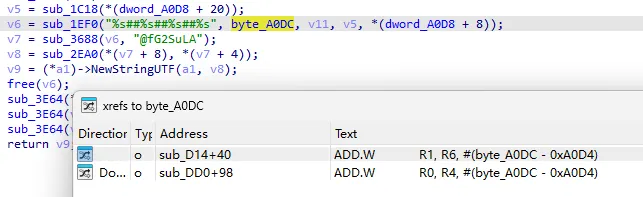 参数1好像不太认识,它是来自byte_A0DC,按下X没有交叉引用,但是他实际上是A0D8偏移4位存储的数据,但是我进去看发现不太对得上;