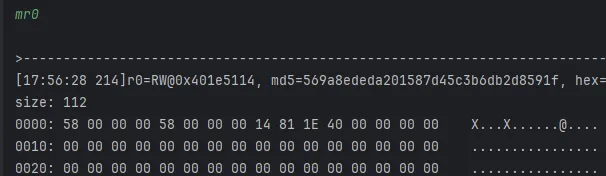 小端序读,m0x401e8114,长度正好是0x58,对得上;
