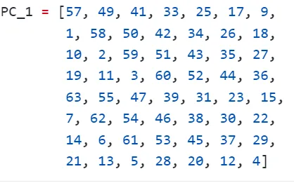 一个道理,这里对应的应该是PC_2表,后续我不贴了,把对应的表都扣下来就行,s盒是标准的,剩下的改的基本上就是这些常量; -