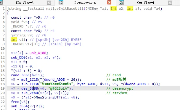 目前还需要分析sub_2EA0这个函数,他是一个str转hex的函数,但也是需要自己还原的;重点就在这个函数,可以自行hook验证一下,入参就是des的结果,出参就是最后的结果;