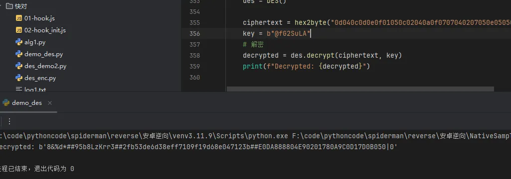 并且参数我们也都解决了,算法主要就是des解密,和init的魔改函数是同一对;