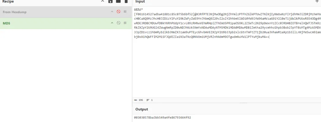 复制代码 隐藏代码>-----------------------------------------------------------------------------<[16:47:10 476]参数0, md5=d688b762594d55ece22fa8bfcaeb226d, hex=2573232325732323257323232573size: 140000: 25 73 23 23 25 73 23 23 25 73 23 23 25 73 %s##%s##%s##%s^-----------------------------------------------------------------------------^>-----------------------------------------------------------------------------<[16:47:10 478]参数1, md5=6560c614ae407a4cf1f1c069e1f028c3, hex=382625642asize: 50000: 38 26 25 64 2A 8&%d*^-----------------------------------------------------------------------------^>-----------------------------------------------------------------------------<[16:47:10 478]参数2 随机数, md5=38b18761d3d0c217371967a98d545c2e, hex=42424242424242424242size: 100000: 42 42 42 42 42 42 42 42 42 42 BBBBBBBBBB^-----------------------------------------------------------------------------^>-----------------------------------------------------------------------------<[16:47:10 478]参数3 md5签名, md5=34bbdff4e0bedd62d3d0bede8c05e251, hex=3266623533646536643338656666373130396631396436386530343731323362size: 320000: 32 66 62 35 33 64 65 36 64 33 38 65 66 66 37 31 2fb53de6d38eff710010: 30 39 66 31 39 64 36 38 65 30 34 37 31 32 33 62 09f19d68e047123b^-----------------------------------------------------------------------------^>-----------------------------------------------------------------------------<[16:47:10 478]参数4, md5=0be9dbcbe36e5f2cc0d0ecabc9c737f9, hex=45304441383838383034453930323031373830413943304431374430423035307c30size: 340000: 45 30 44 41 38 38 38 38 30 34 45 39 30 32 30 31 E0DA888804E902010010: 37 38 30 41 39 43 30 44 31 37 44 30 42 30 35 30 780A9C0D17D0B0500020: 7C 30 |0^-----------------------------------------------------------------------------^