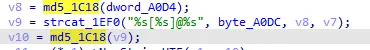 这两个值是一样的,其次,如果去分析md5_1C18(*(dword_A0D8 + 20))的话,也是可以找到证据的;