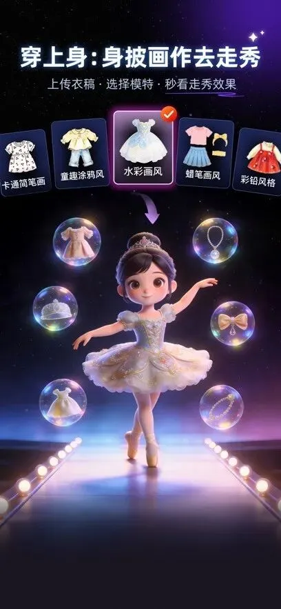 风格覆盖上,该功能涵盖卡通、油画、水彩、动漫、国风、科幻、复古、粘土、剪纸、3D 等数十种主流风格,无论是治愈系萌系卡通,还是大气磅礴的国风意境,亦或是充满未来感的科幻风格,用户无需手动调参、无需专业绘画基
