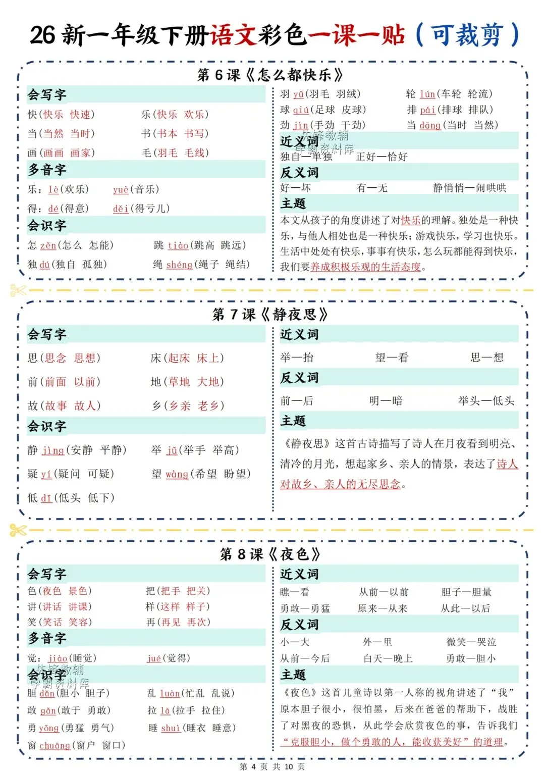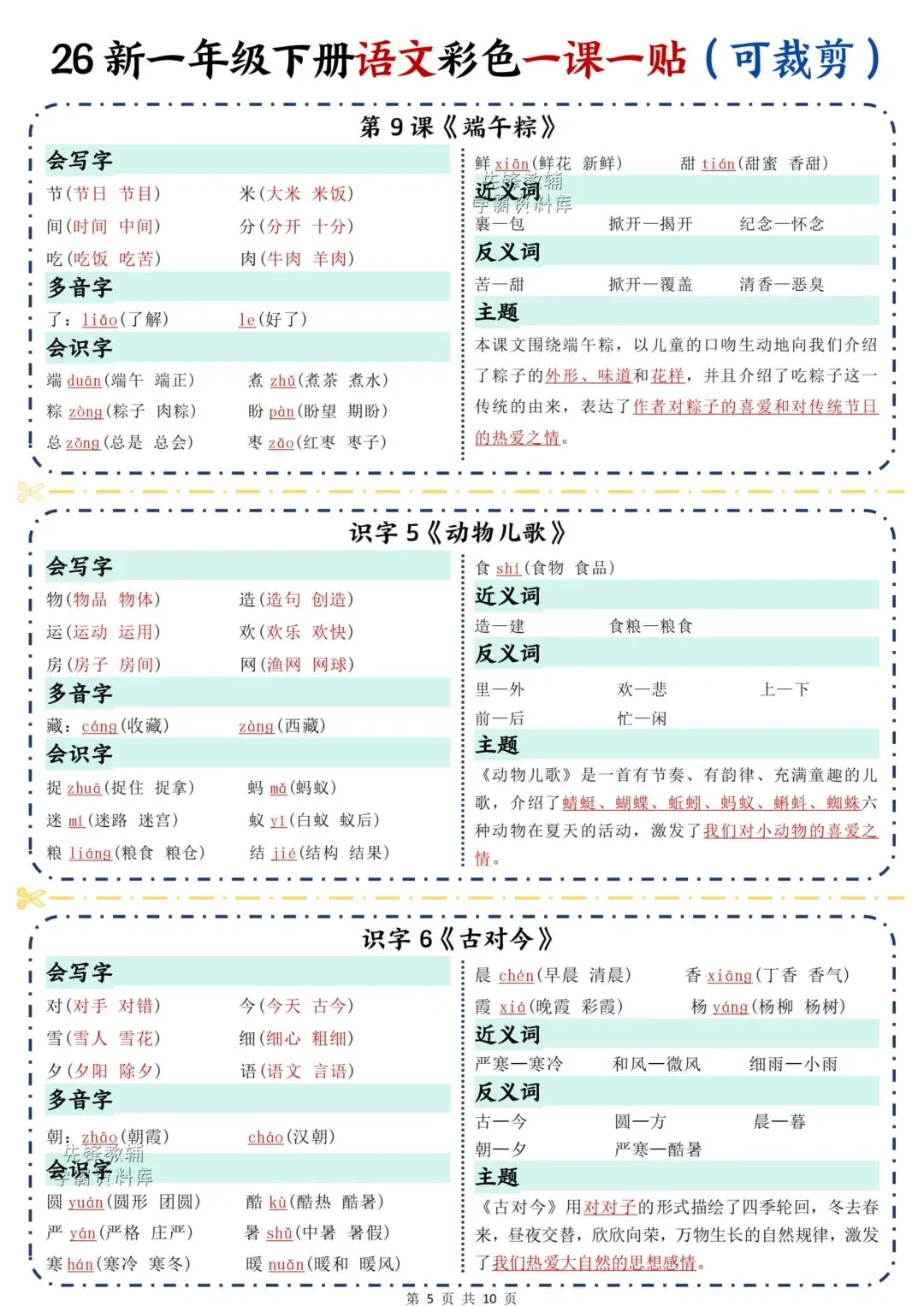 家长朋友们是否为孩子学习发愁?别担心《一年级语文下册课课贴》来助力。根据册历年真题编制,题型经典,有一定难度,家长朋友们收藏打印出来让孩子做一做,及时查缺补漏。自信上考场 !