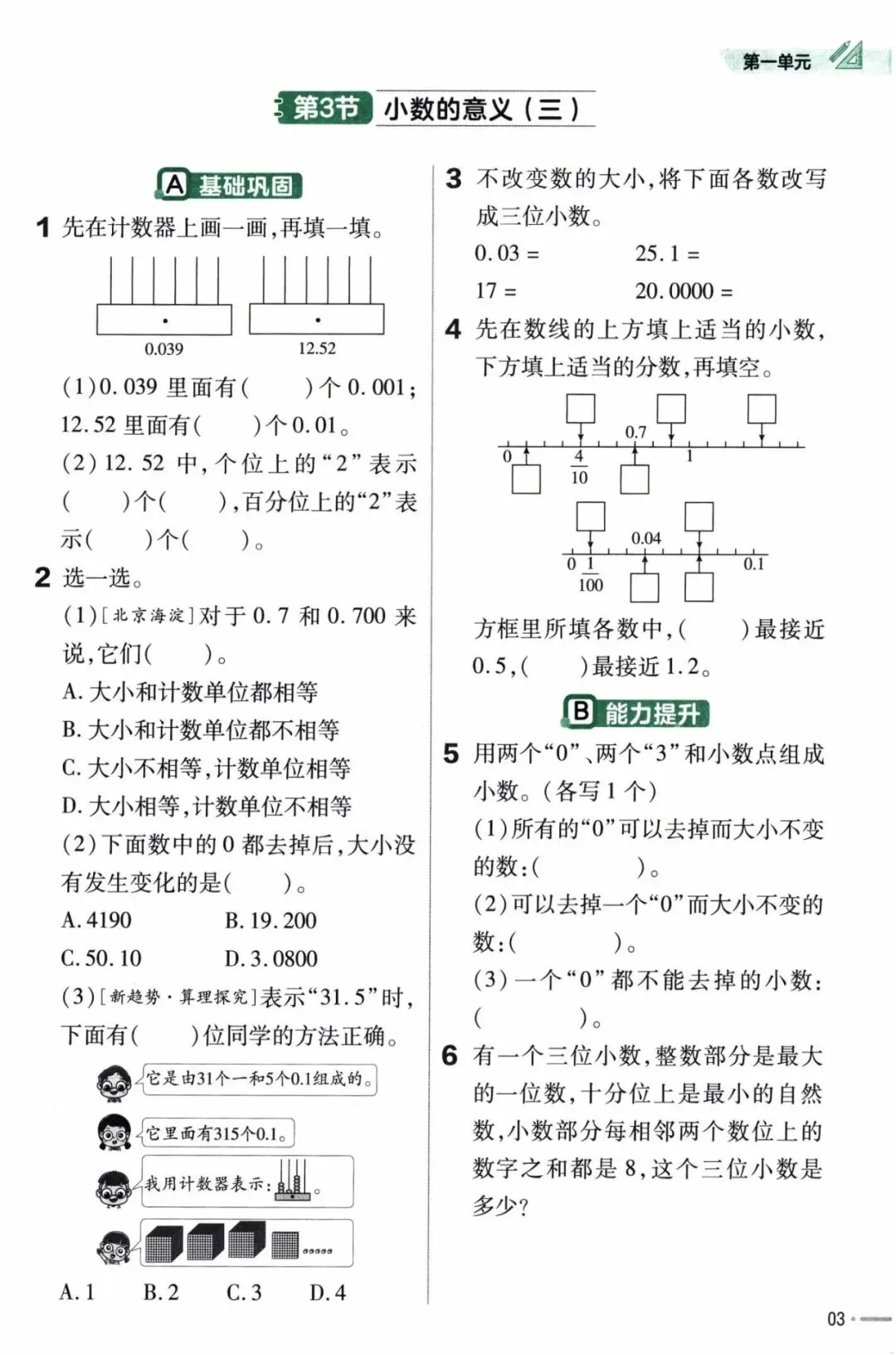 2026春北师大版数学四年级下册《课本同步一课一练》(含答案)| 完整可打印