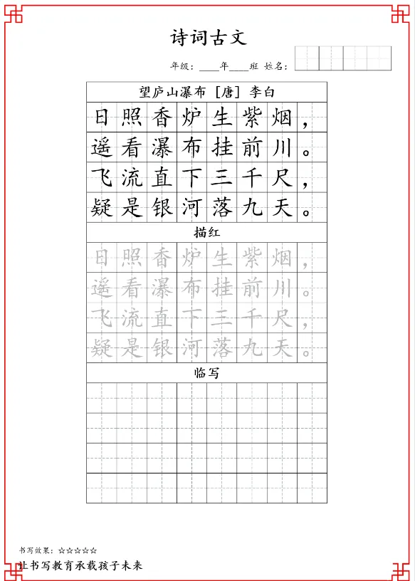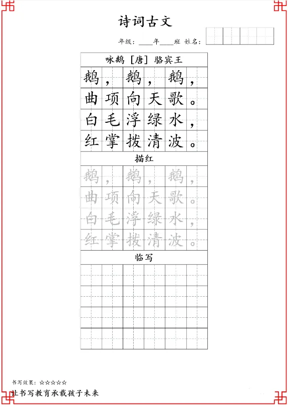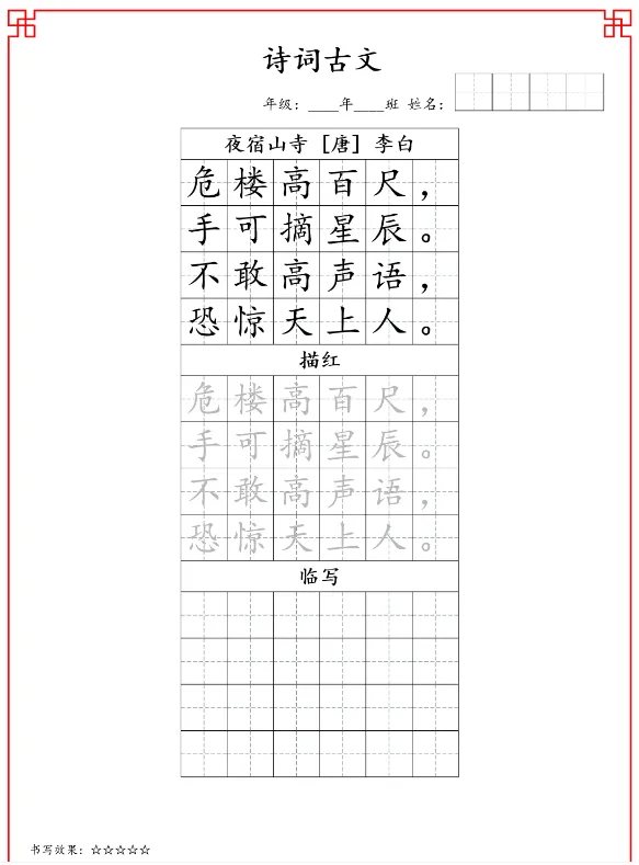 26新版二年级古诗词字帖共15页(完整版),电子版高清可下载可打印。因篇幅有限,仅展示部分内容。有需要的家长快给孩子领取一份,让孩子练古诗词字帖吧!