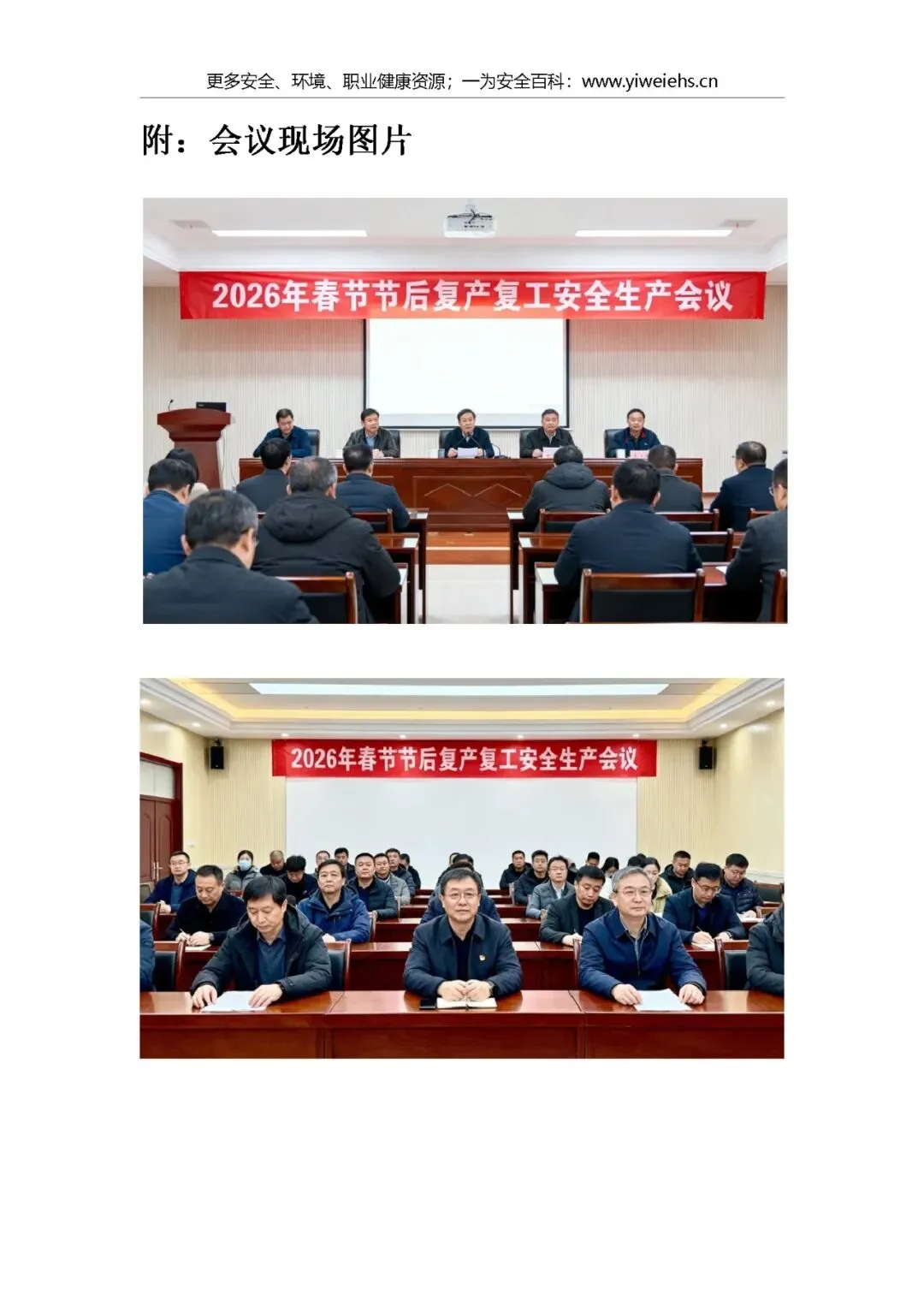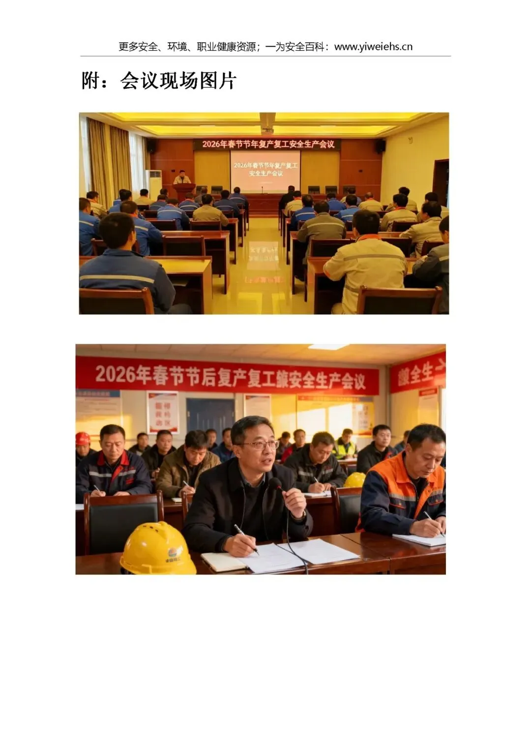 内容涵盖事故教训通报、节后安全心态调整指引、复工前风险分析及管控措施、安全检查部署及复工重点注意事项。