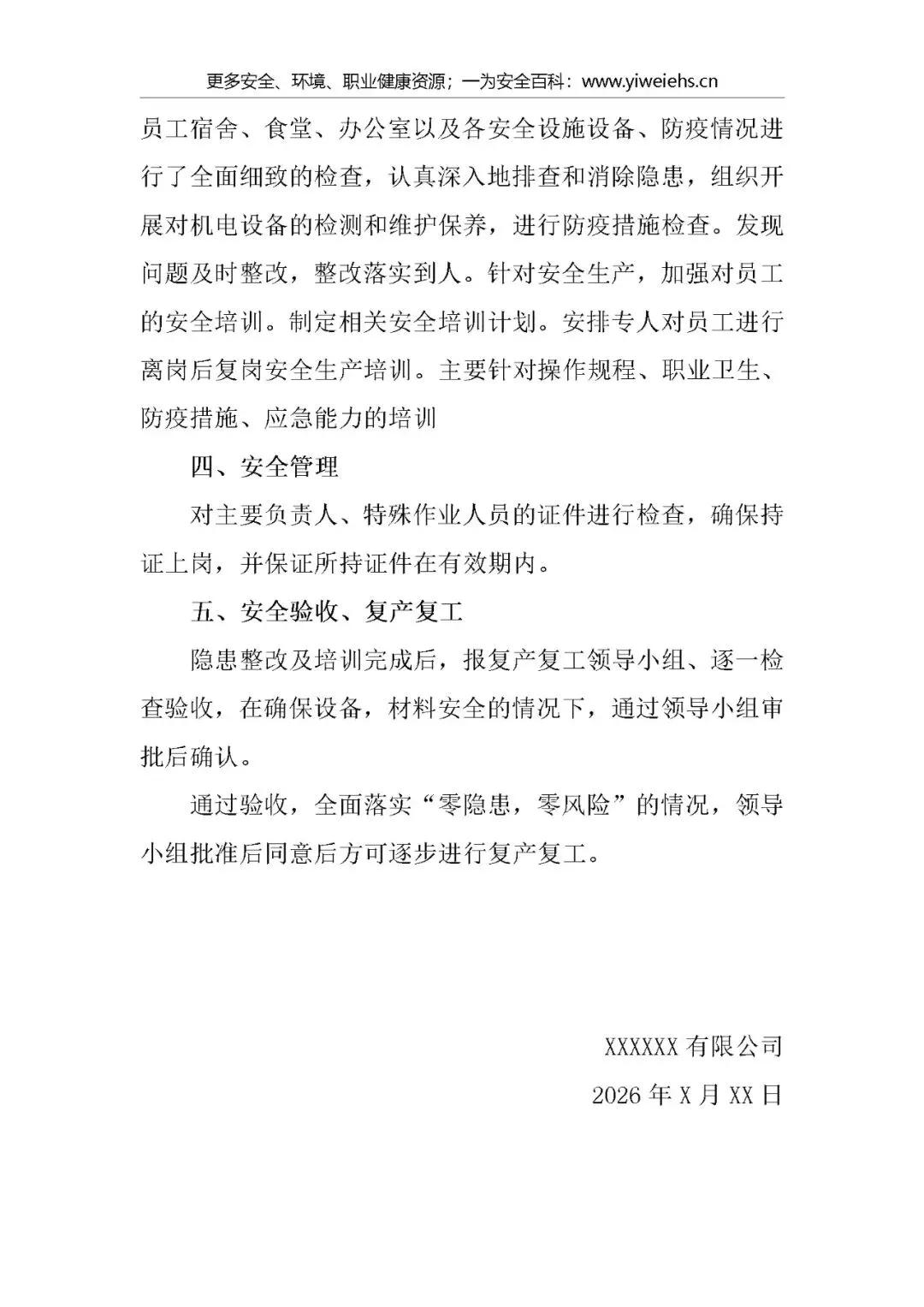 方案强调逐级落实责任制,制定并开展复工安全培训计划。