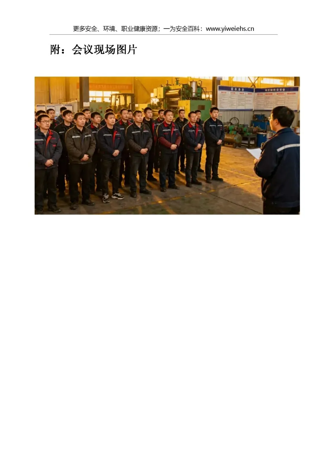 主要内容包括通报复工复产安全事故及教训、部署安全工作方案及分工、明确复工安全要求及注意事项、布置安全培训工作。