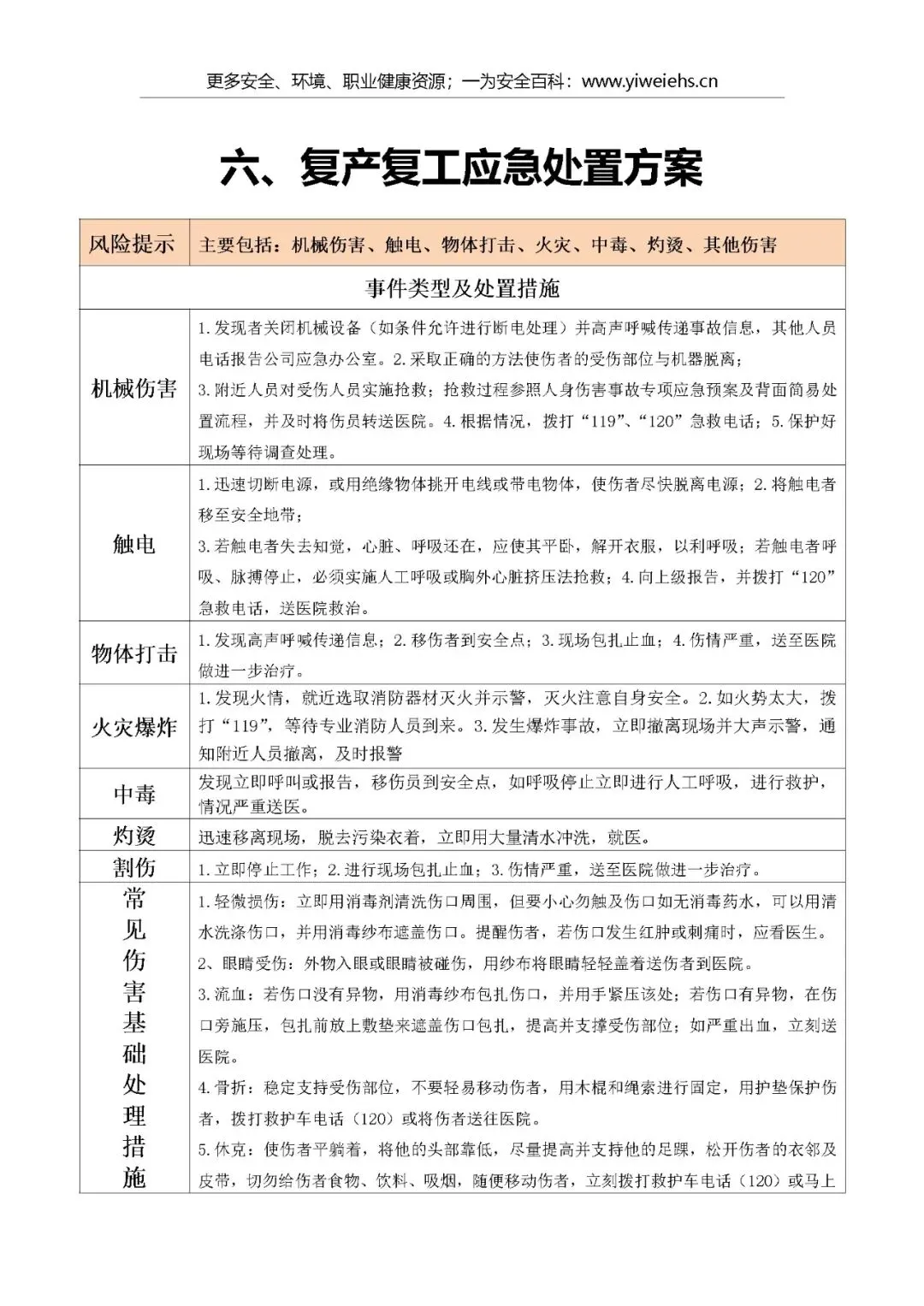 针对机械伤害、触电、物体打击、火灾爆炸、中毒、灼烫、割伤等常见风险制定了具体的处置措施。