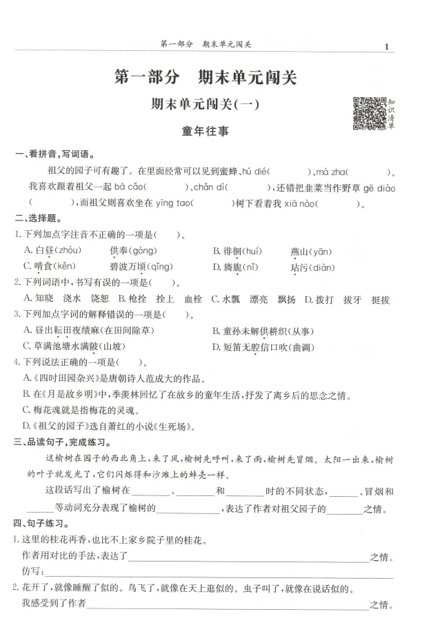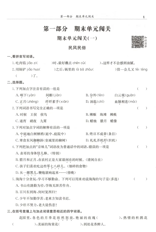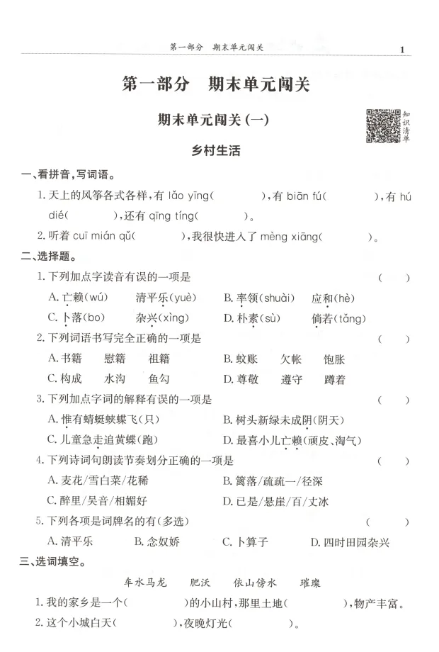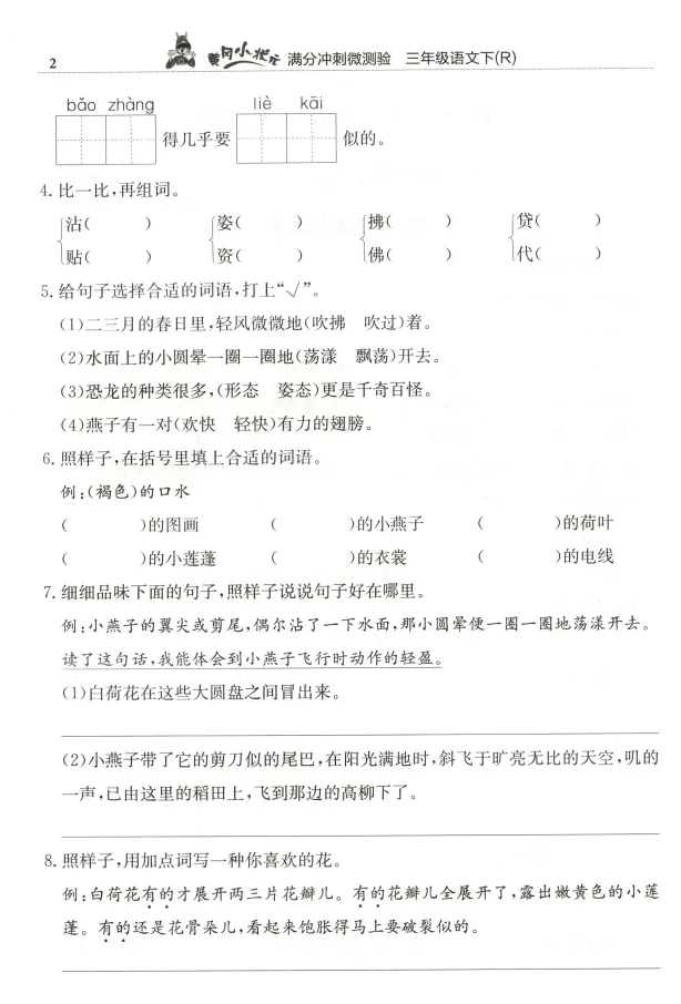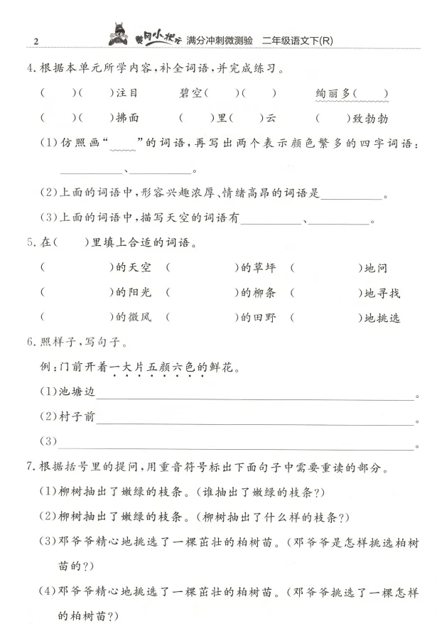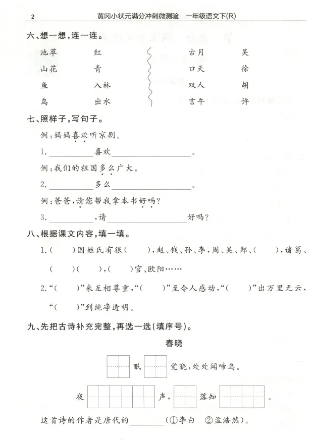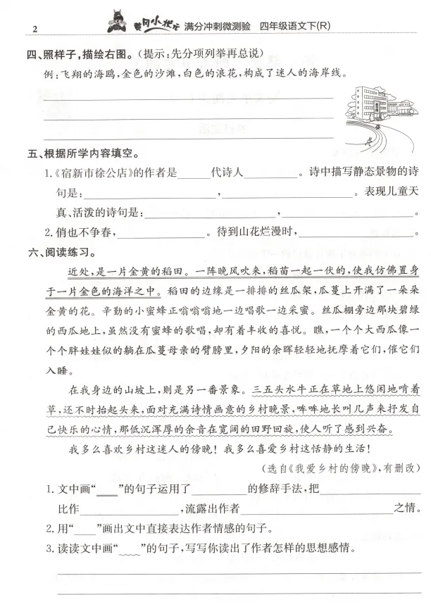 1-6年级语文下册 满分冲刺微测验丨高清电子版 无水印,可打印
