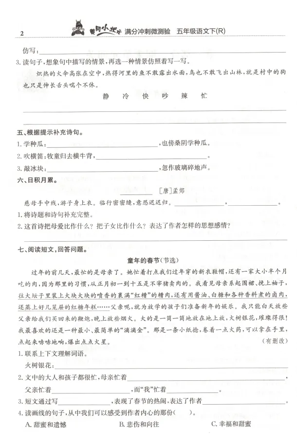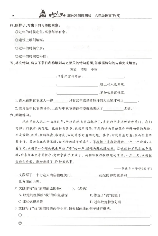 语文1-6年级(下册)《满分冲刺微测验》,资料附参考答案。文章末尾有完整电子版领取方式。