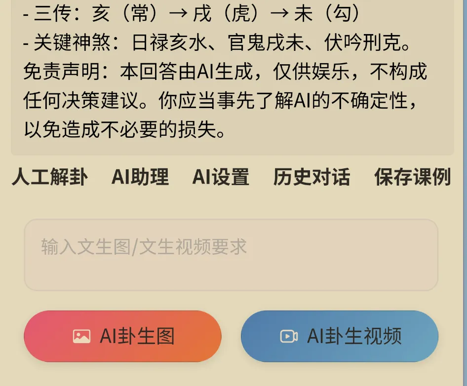 支持将AI解卦的结果,生成为4张图片和一个10S的视频。