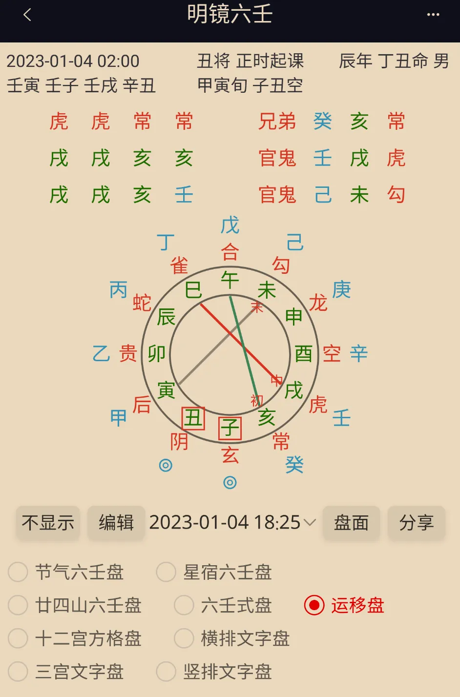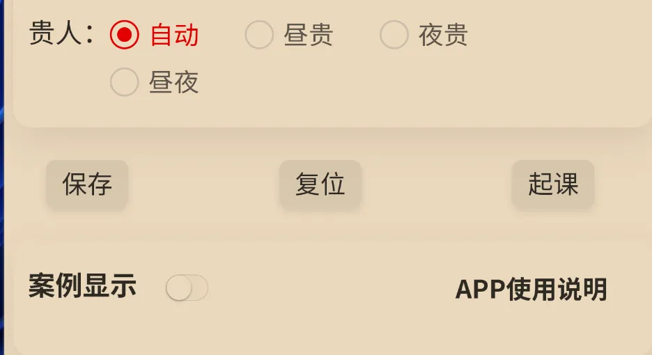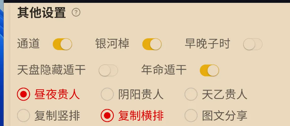 在设置页面勾选年命遁干后,盘面显示行年和本命的天干。
