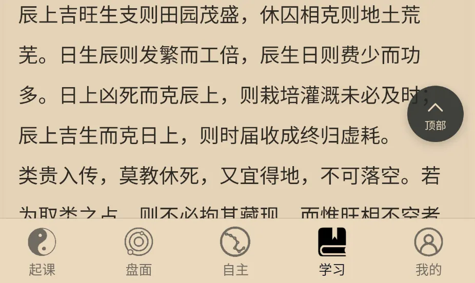 11. 学习-分类占/九宗门/毕法赋文字,增加了一键返回顶部键。