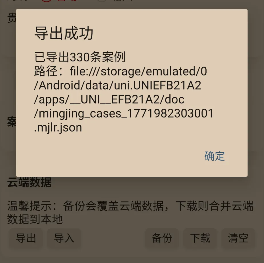 右下角支持将案例备份到云端和下载到本地,作用是同一个账号不同设备端之间案例同步。