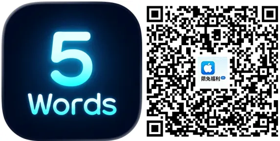 2.【5 English Words: 每日5个英文单词】 ➡️ 免费/内购限免简介: 一款轻量英语词汇学习工具,通过每日学习 5 个单词、智能间隔重复和真实例句辅助,帮助用户高效记忆单词,轻松提升词汇量。
