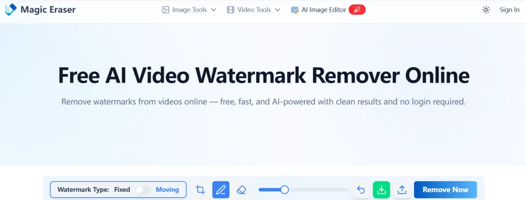 Magic Eraser 的视频去水印功能操作门槛极低,无需下载安装软件,通过浏览器访问其官网(https://magiceraser.org/remove-watermark-from-video/)即可使用,特别适合追求高效的教育工作者和创作者。