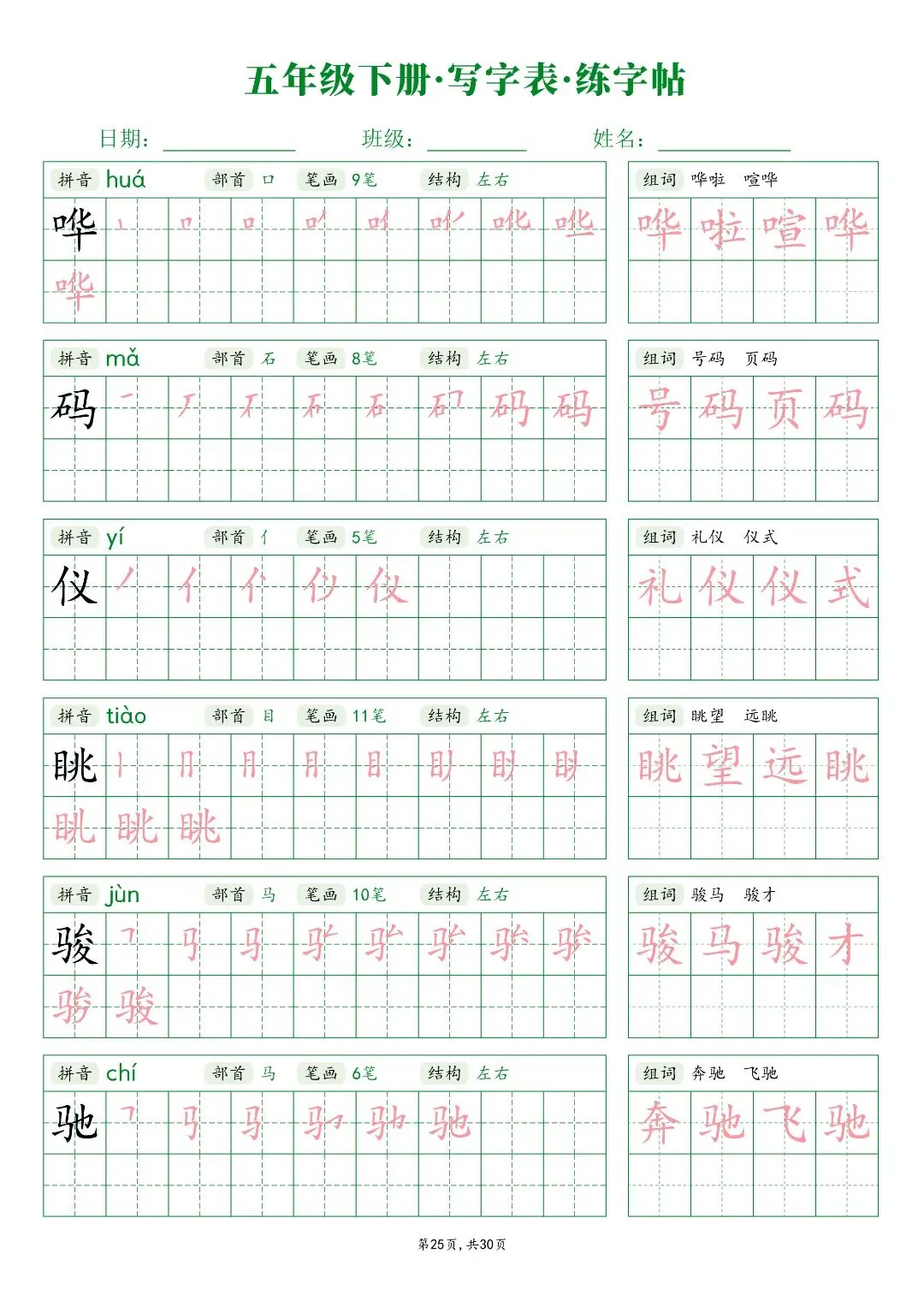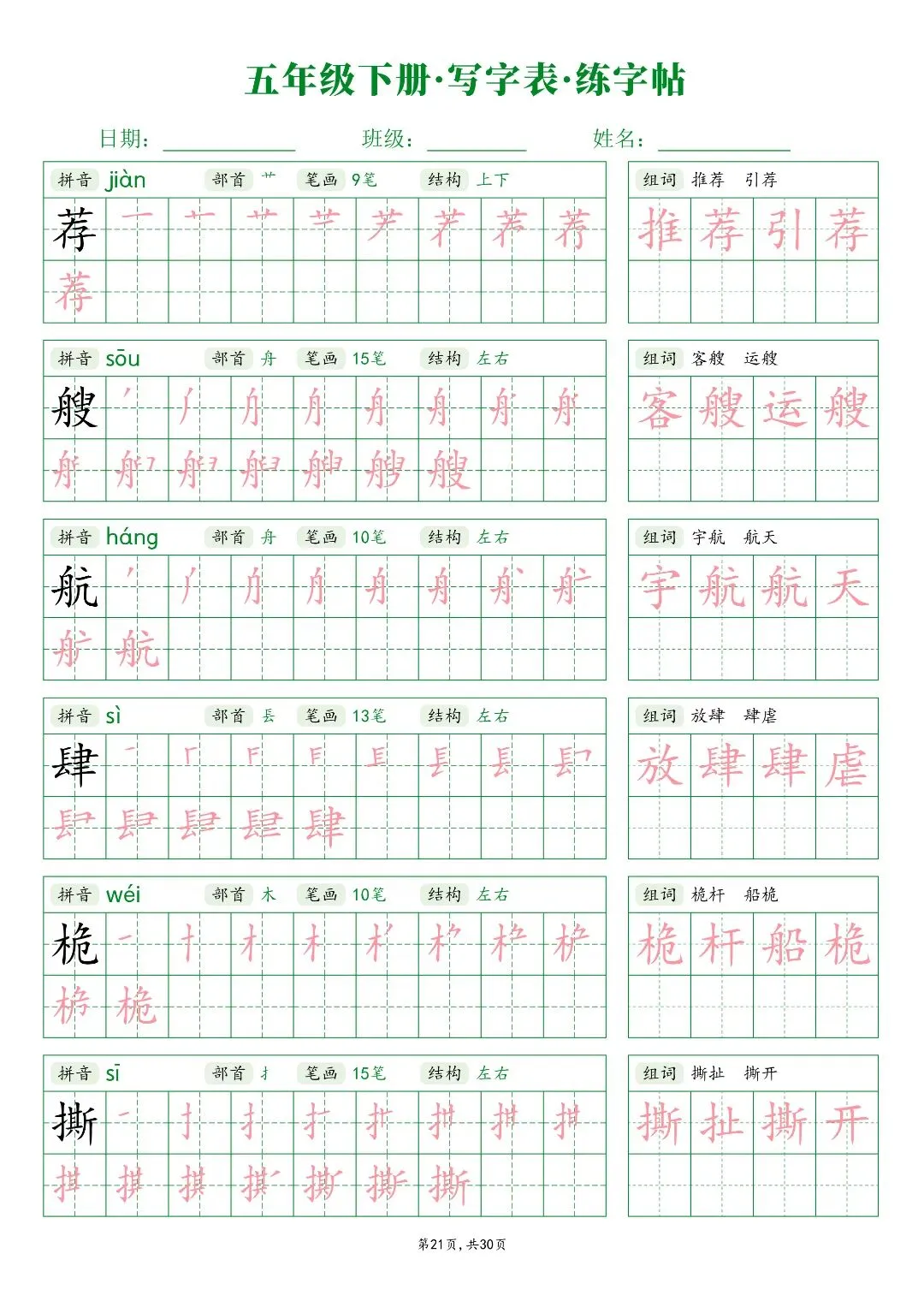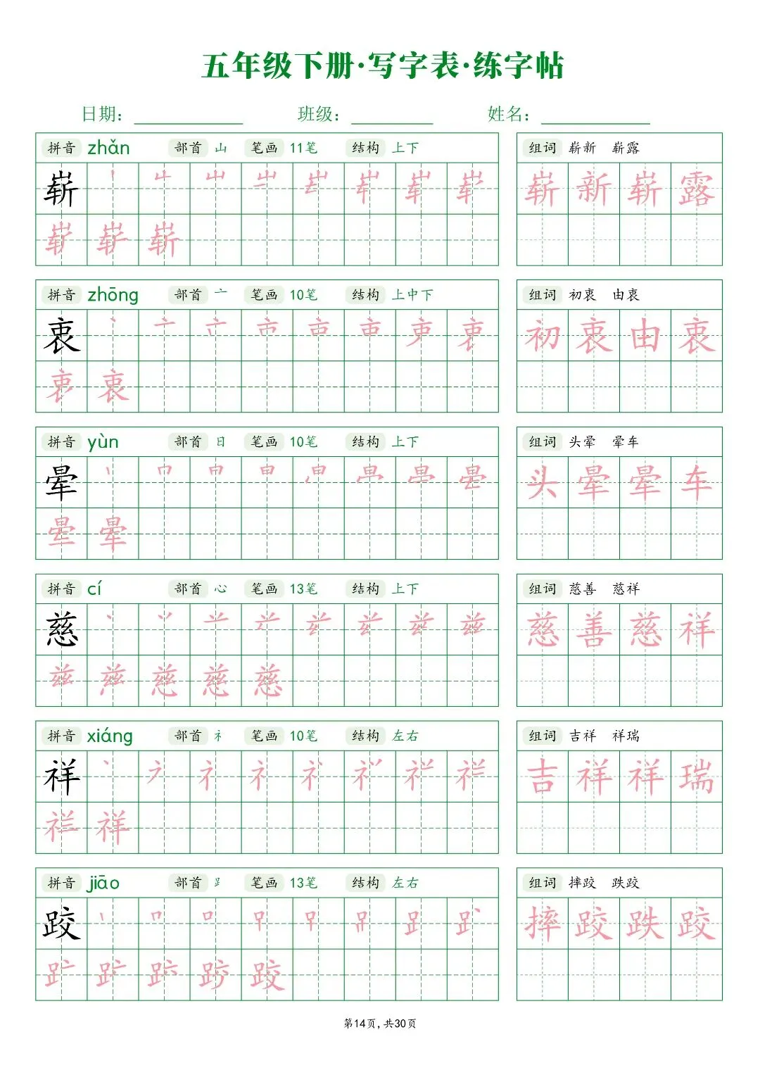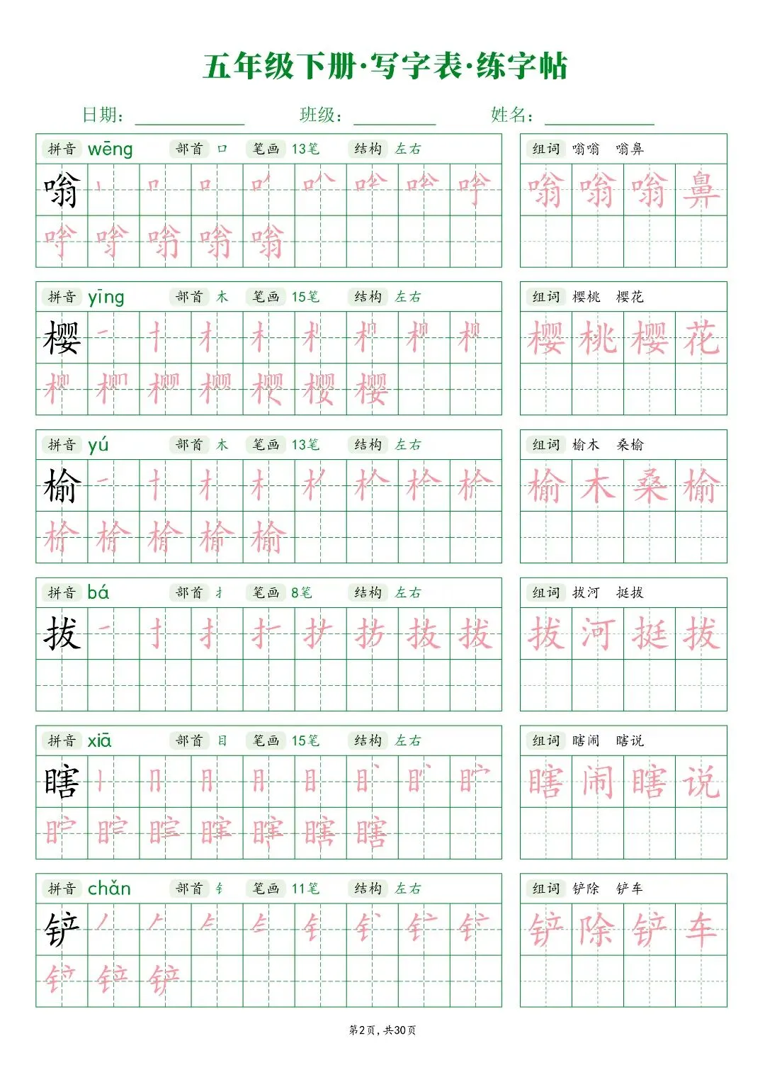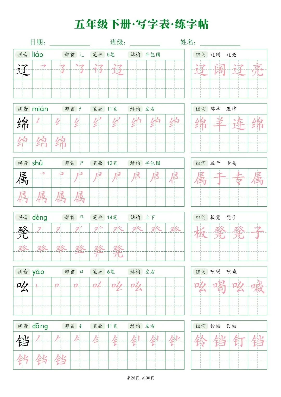 26春五年级下册人教部编版【语文写字表字帖】|完整电子版可打印