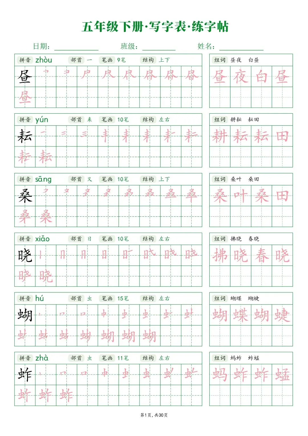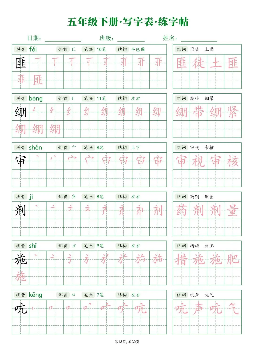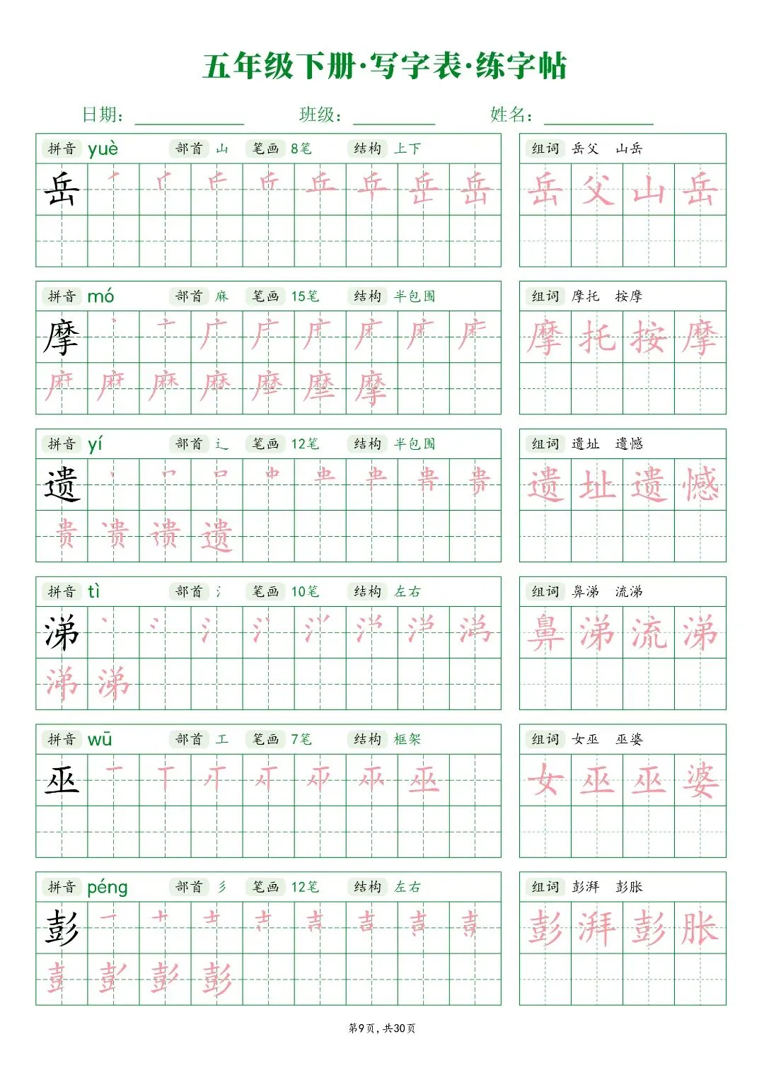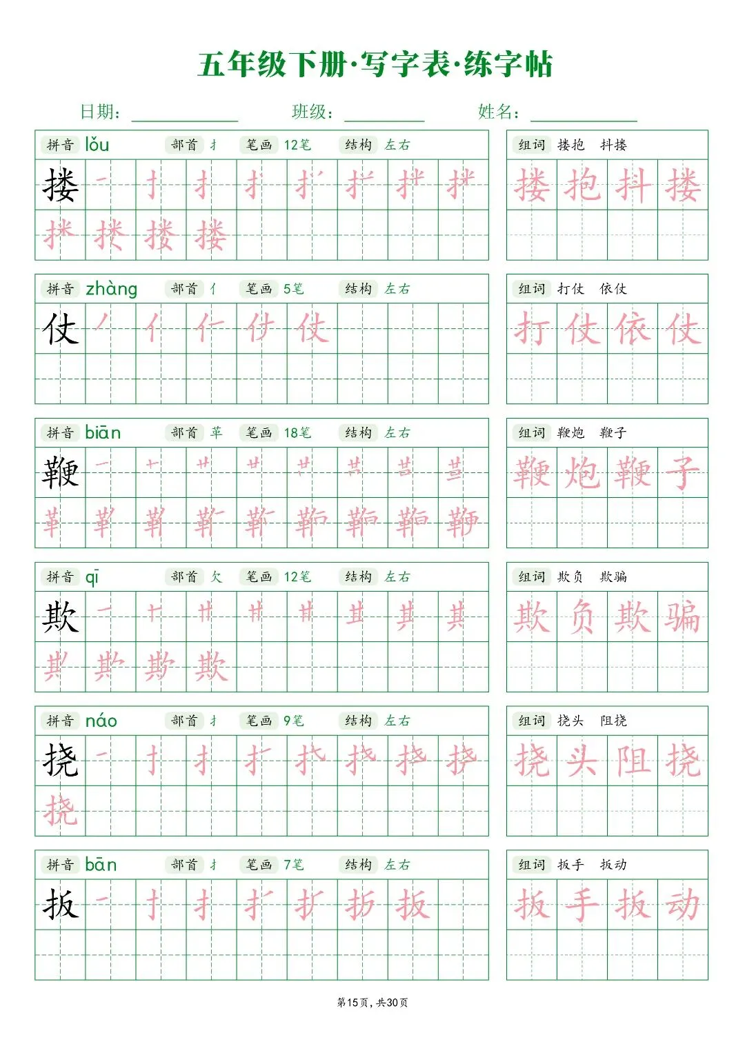 26春五年级下册人教部编版【语文写字表字帖】|完整电子版可打印