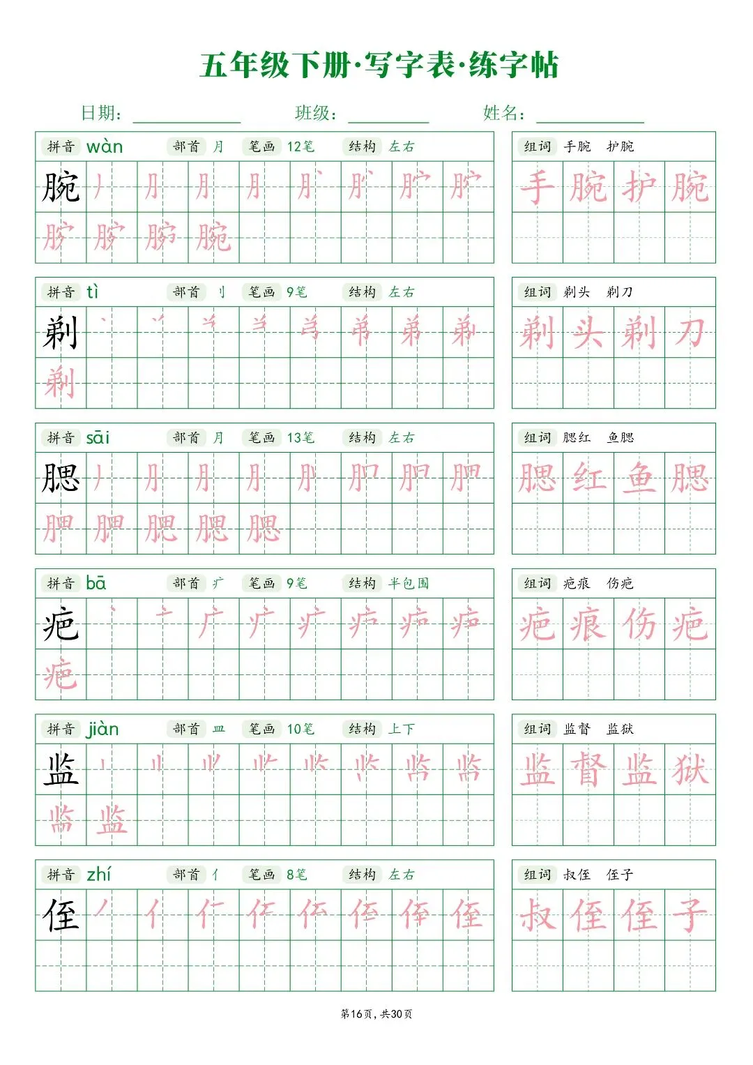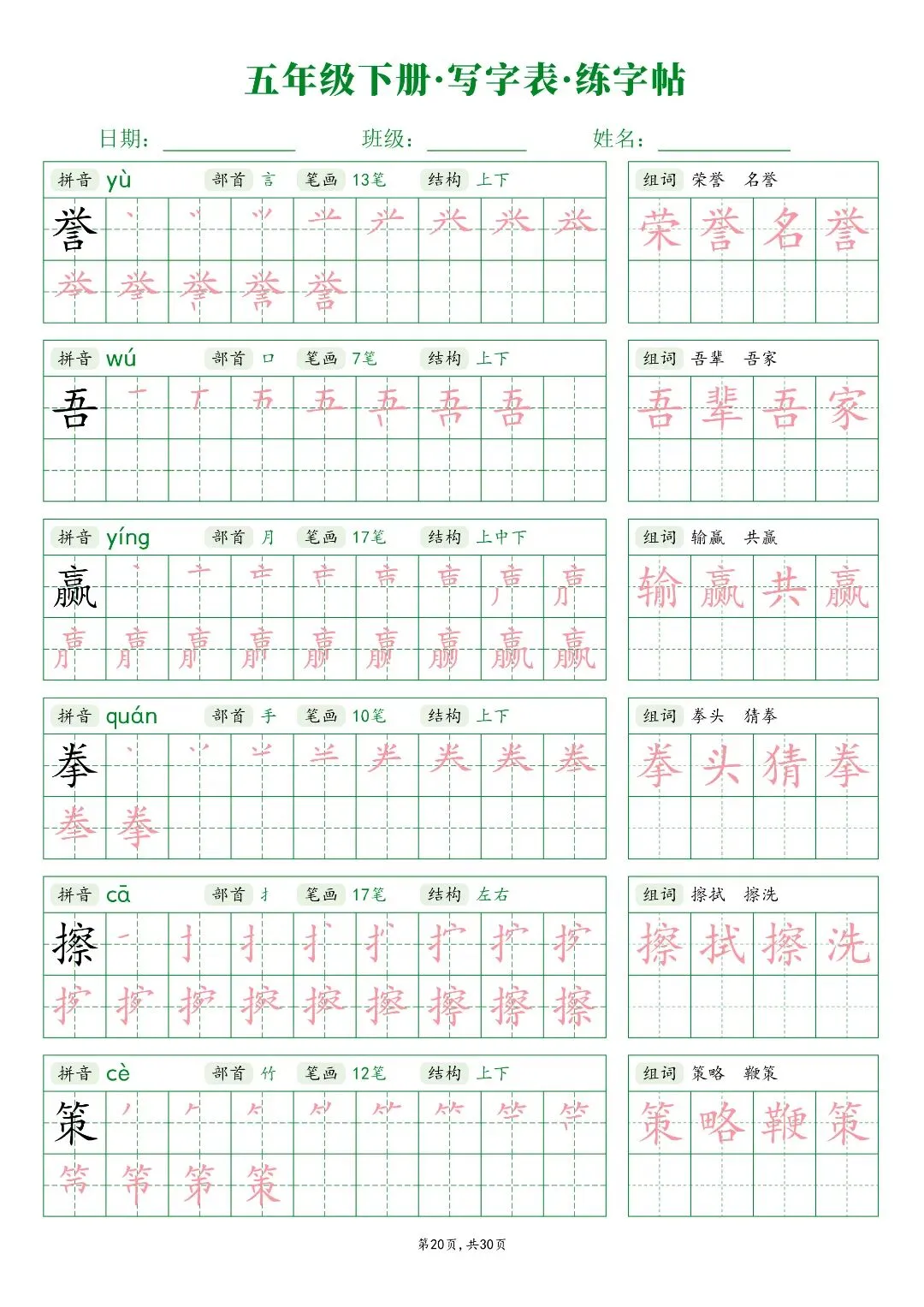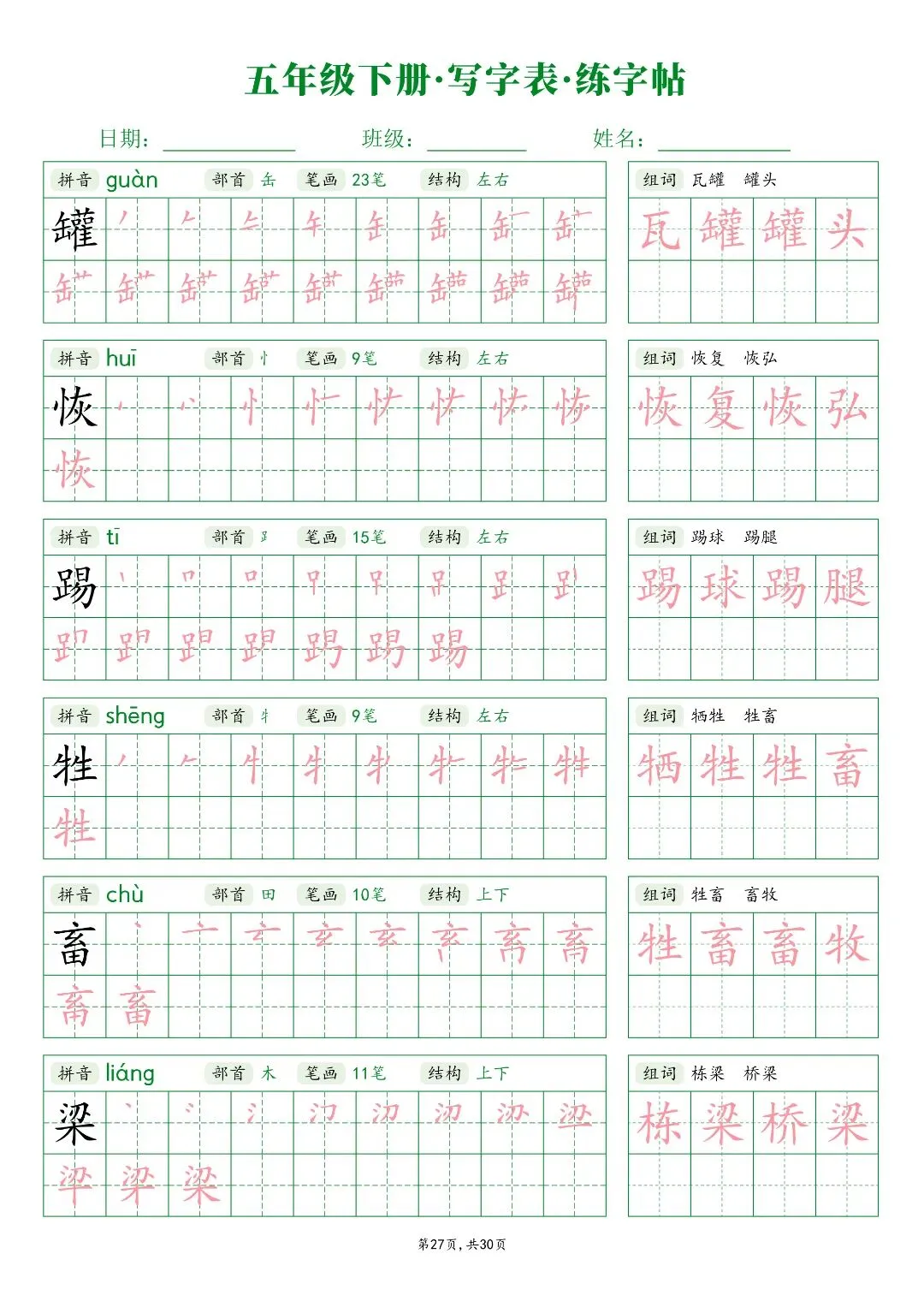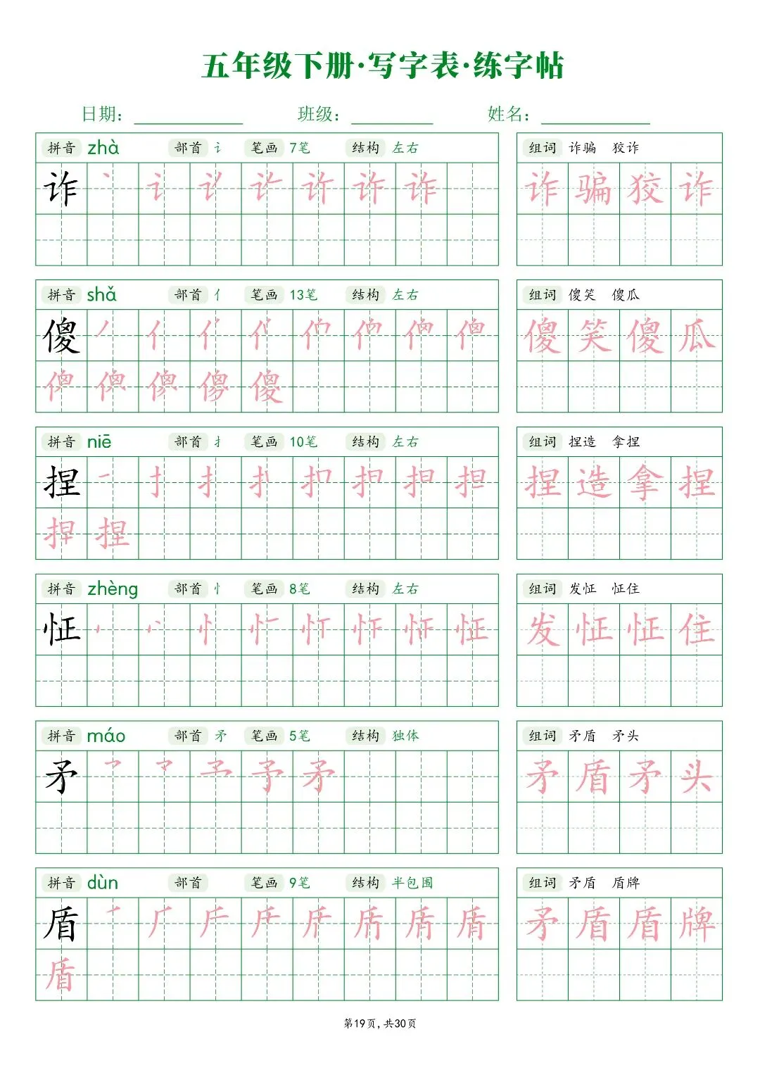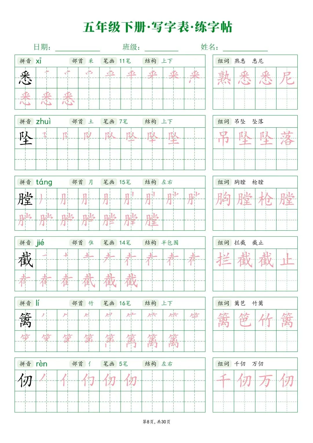 26春五年级下册人教部编版【语文写字表字帖】|完整电子版可打印