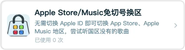 不用登录第二个 Apple ID,也不用改任何账号设置,App Store 和 Apple Music 同时换区——外区的 App 能找到,外区的歌能听到。