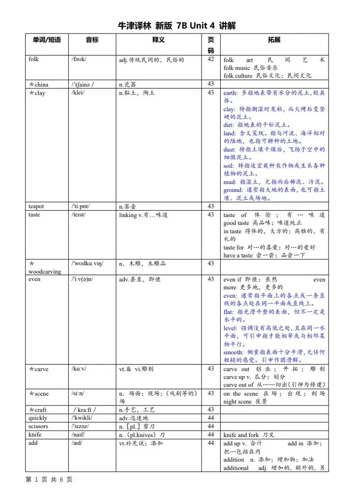 【译林版】七年级下册词汇表讲解(完整电子版可打印)