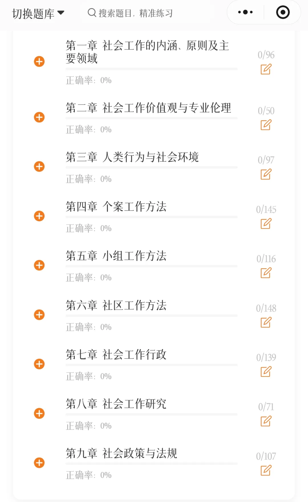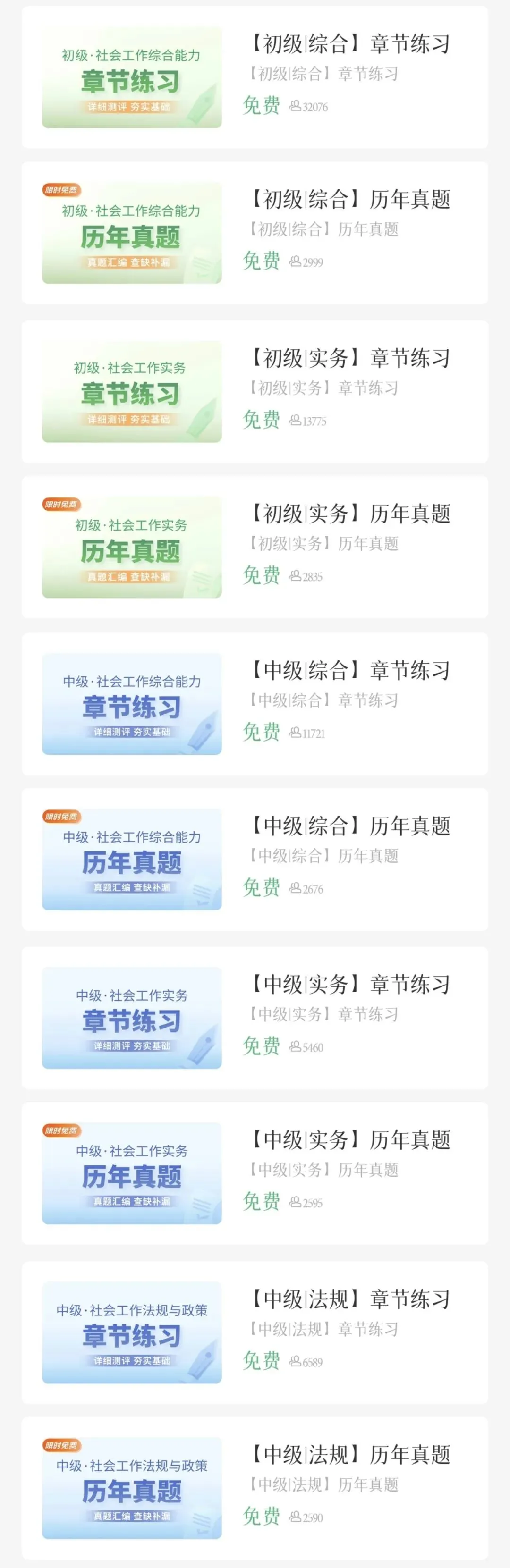 乐橙网APP上有3000+的初级、中级社工的题量,都包含了章节习题、历年真题等等,随时可以进行切换,完全够我们平时去刷了。