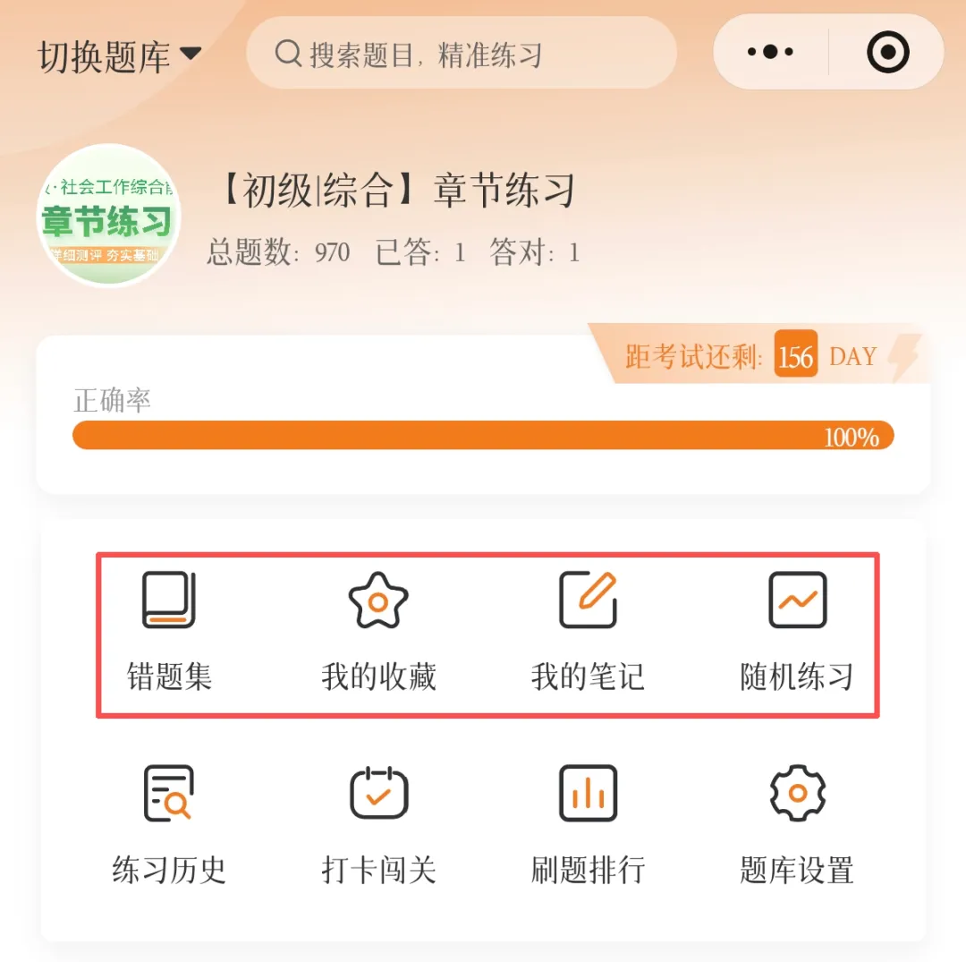 并且每个章节都是按照考点分好了,也很有针对性,想刷哪个考点的题,完全可以对应找到,平时上下班、摸鱼的碎片时间,就可以刷2、3个考点的题,进度也都是随时保存,下次可以接着刷,简直是摸鱼神器!