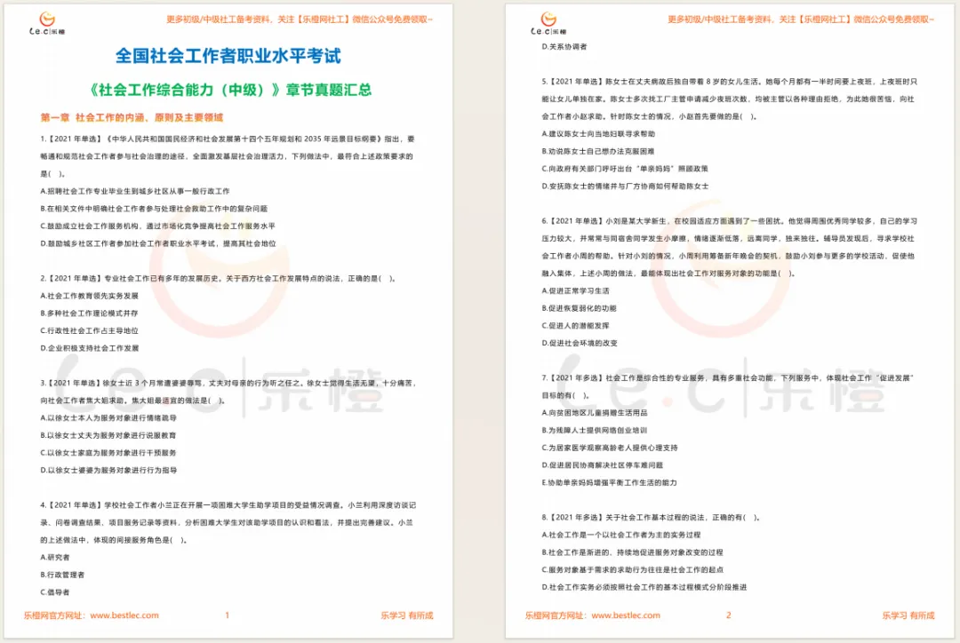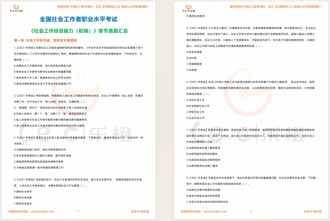 社工考试出题有个特点,基本上99%的零基础小伙伴都不知道:社工考试出题顺序,就是章节顺序。所以橙子给大家把近3年的考试真题卷上的考题,一道道扒下来,按照章节顺序,整理汇总在一起,做成了历年章节真题题库。
