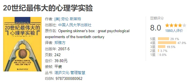 《20世纪最伟大的心理学实验》pdf+epub+mobi+azw3电子书免费下载 《20世纪最伟大的心理学实验》电子版下载链接,点击文章末尾左下方“阅读原文”自动跳转。 代找电子书加微:15710080257,加微备注领取电子资料可免费领取20T电子资料合集(古籍/电子书/小说/游戏/软件工具/电影/电视剧/动漫/PPT素材/教辅资料/烹饪教程/各类学习文档等电子资源)。 特别提醒:电子资料仅供个人学习使用,链接随时失效,请及时保存到个人网盘!