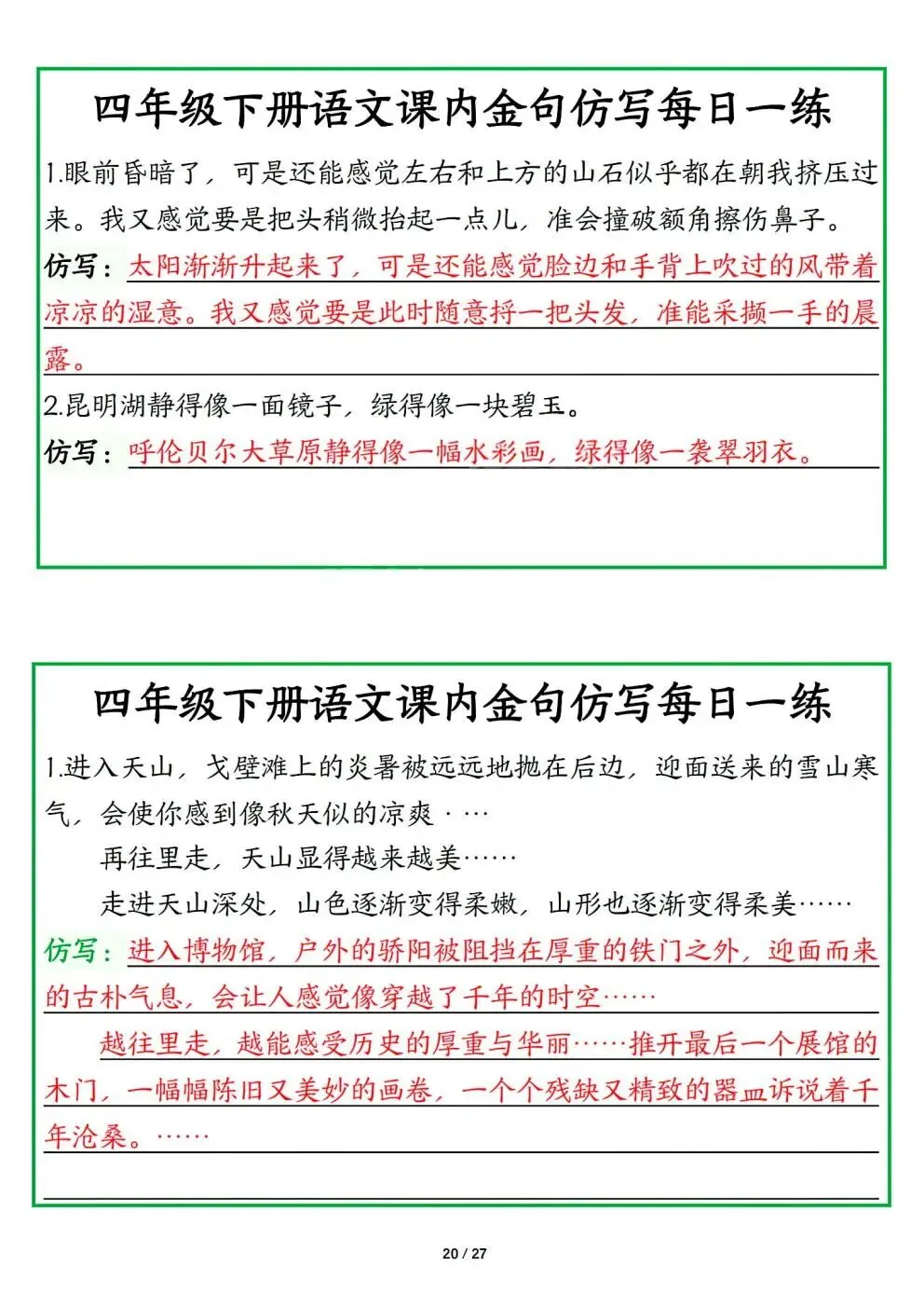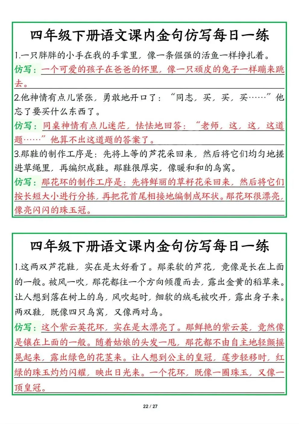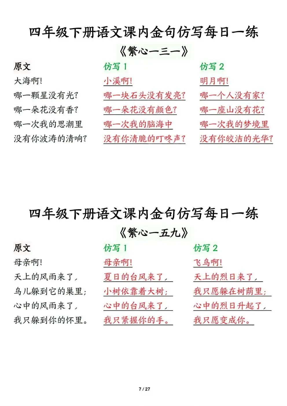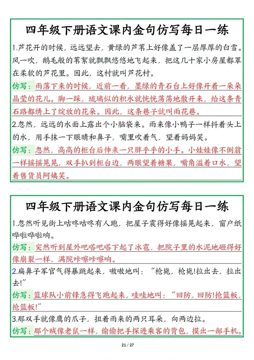 本站文章均为手工撰写未经允许谢绝转载:夜雨聆风 » 四年级下册语文课内仿写每日一练(空白电子版可打印)