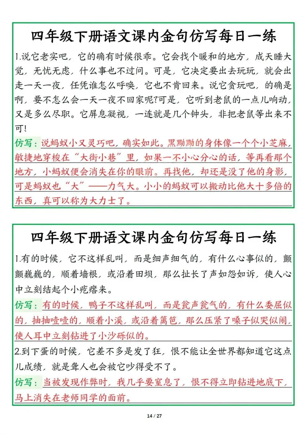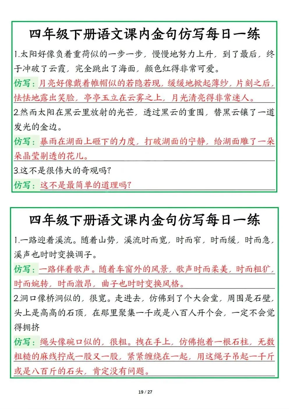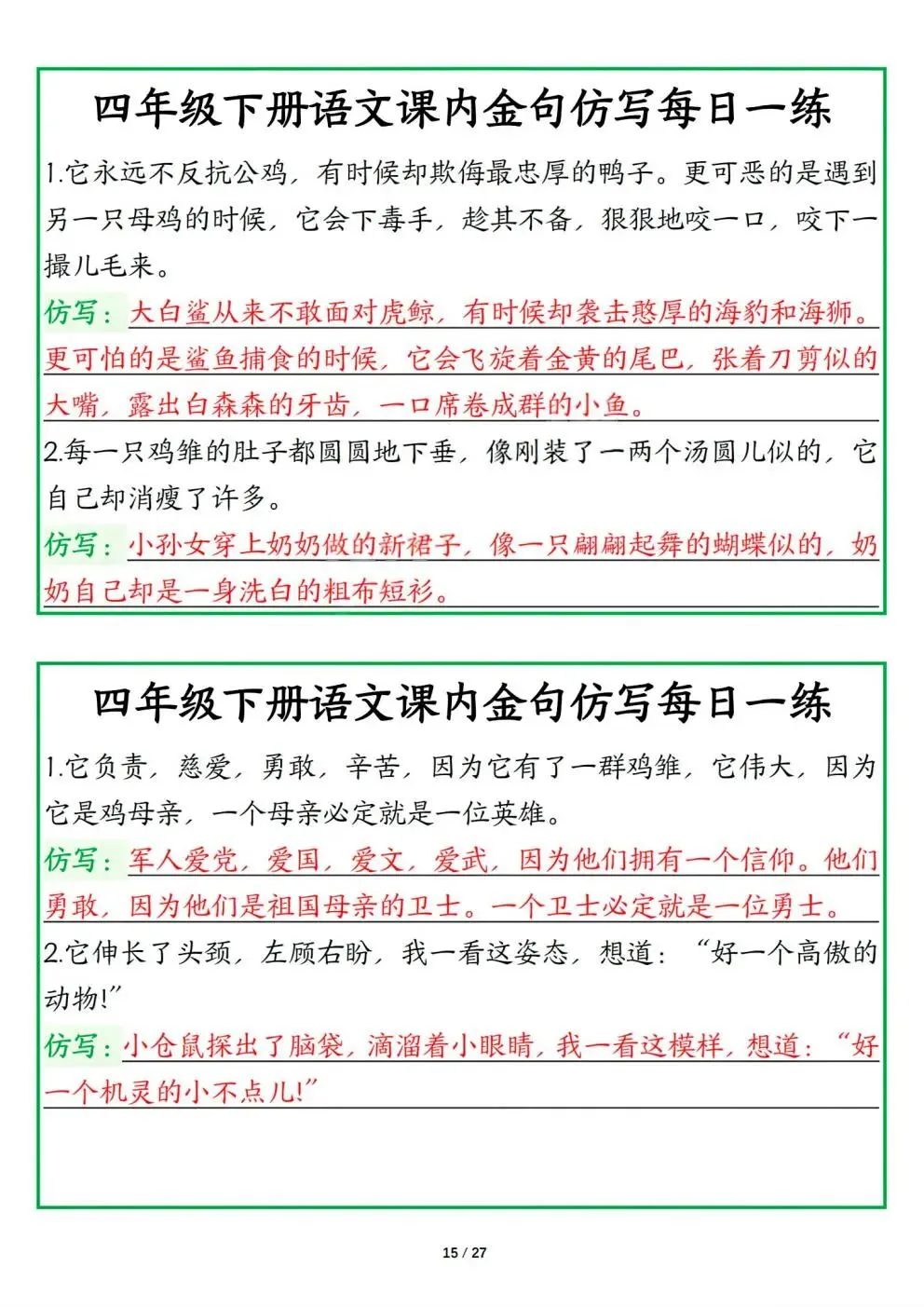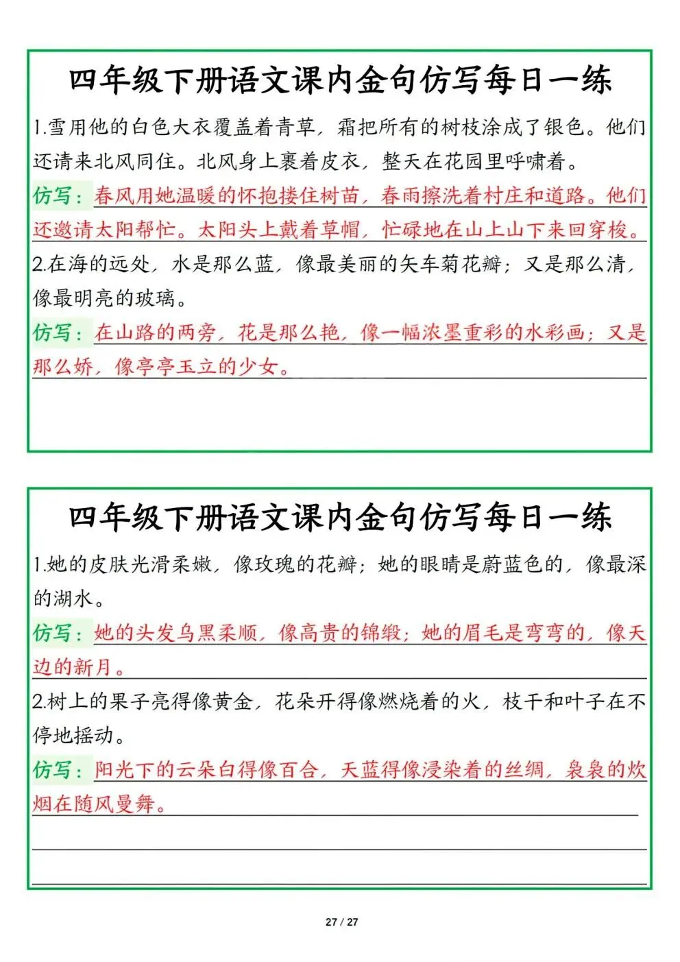 本站文章均为手工撰写未经允许谢绝转载:夜雨聆风 » 四年级下册语文课内仿写每日一练(空白电子版可打印)
