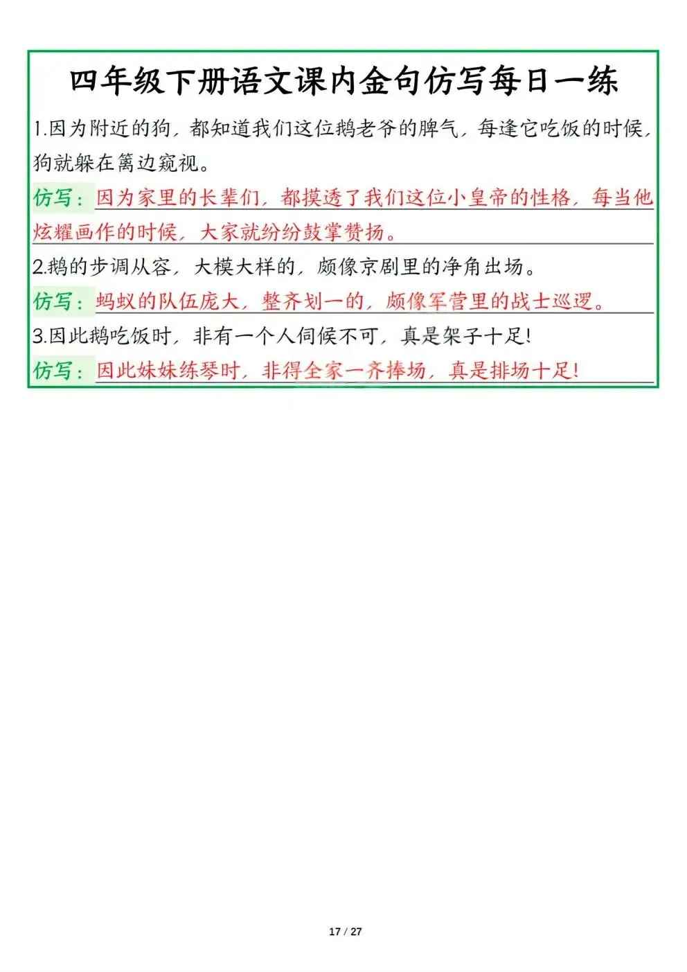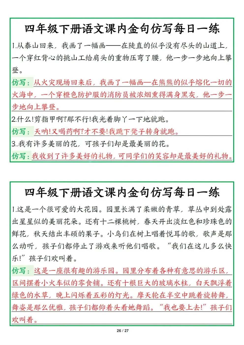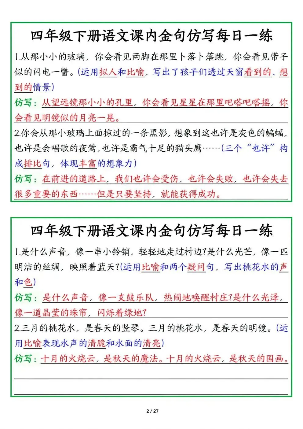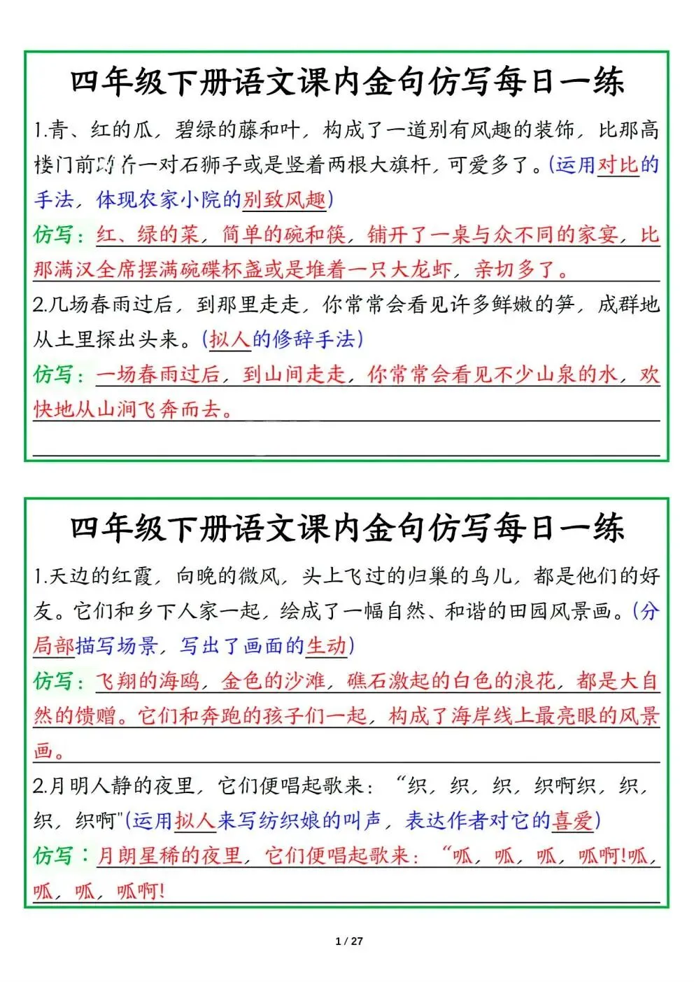 本站文章均为手工撰写未经允许谢绝转载:夜雨聆风 » 四年级下册语文课内仿写每日一练(空白电子版可打印)