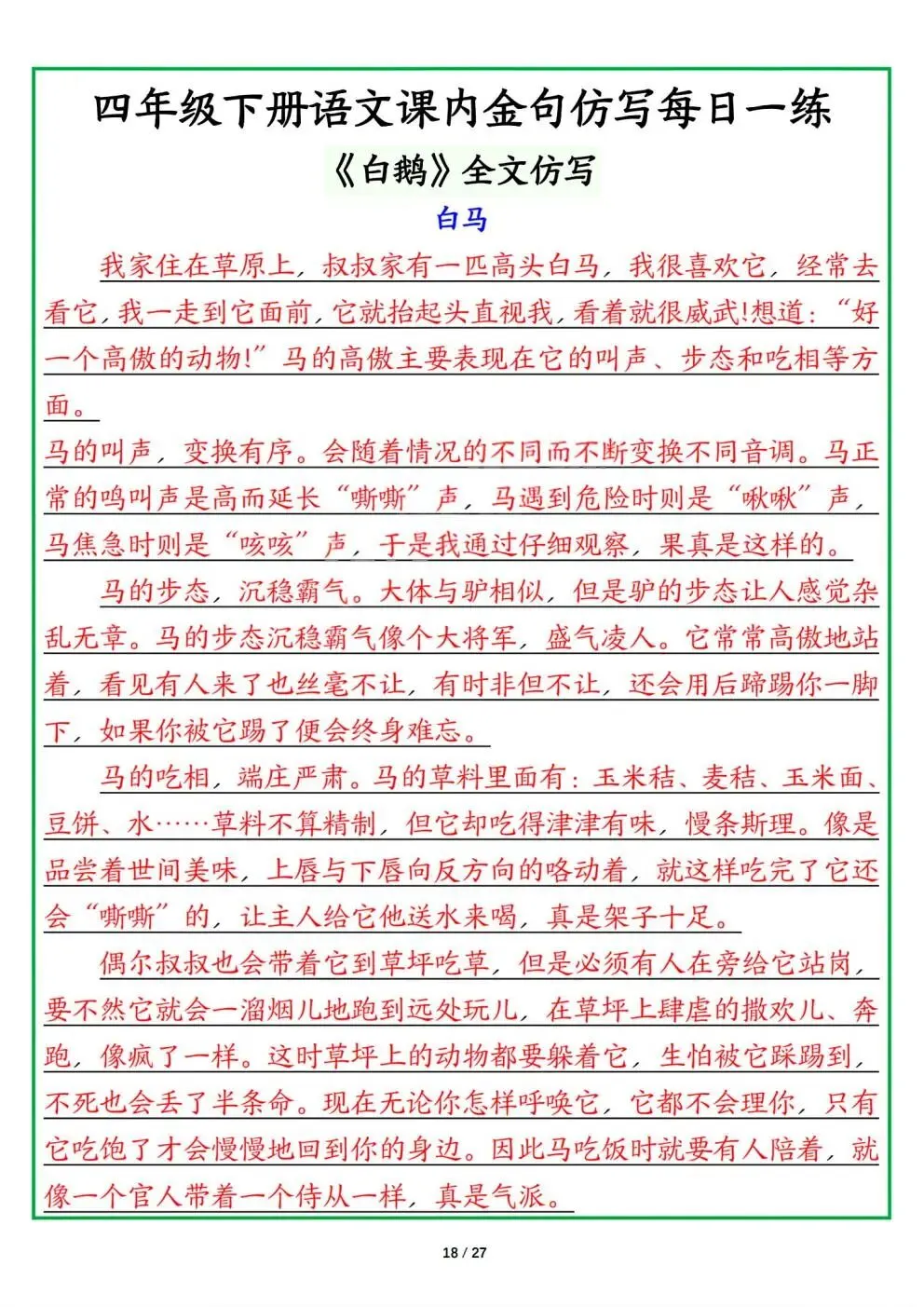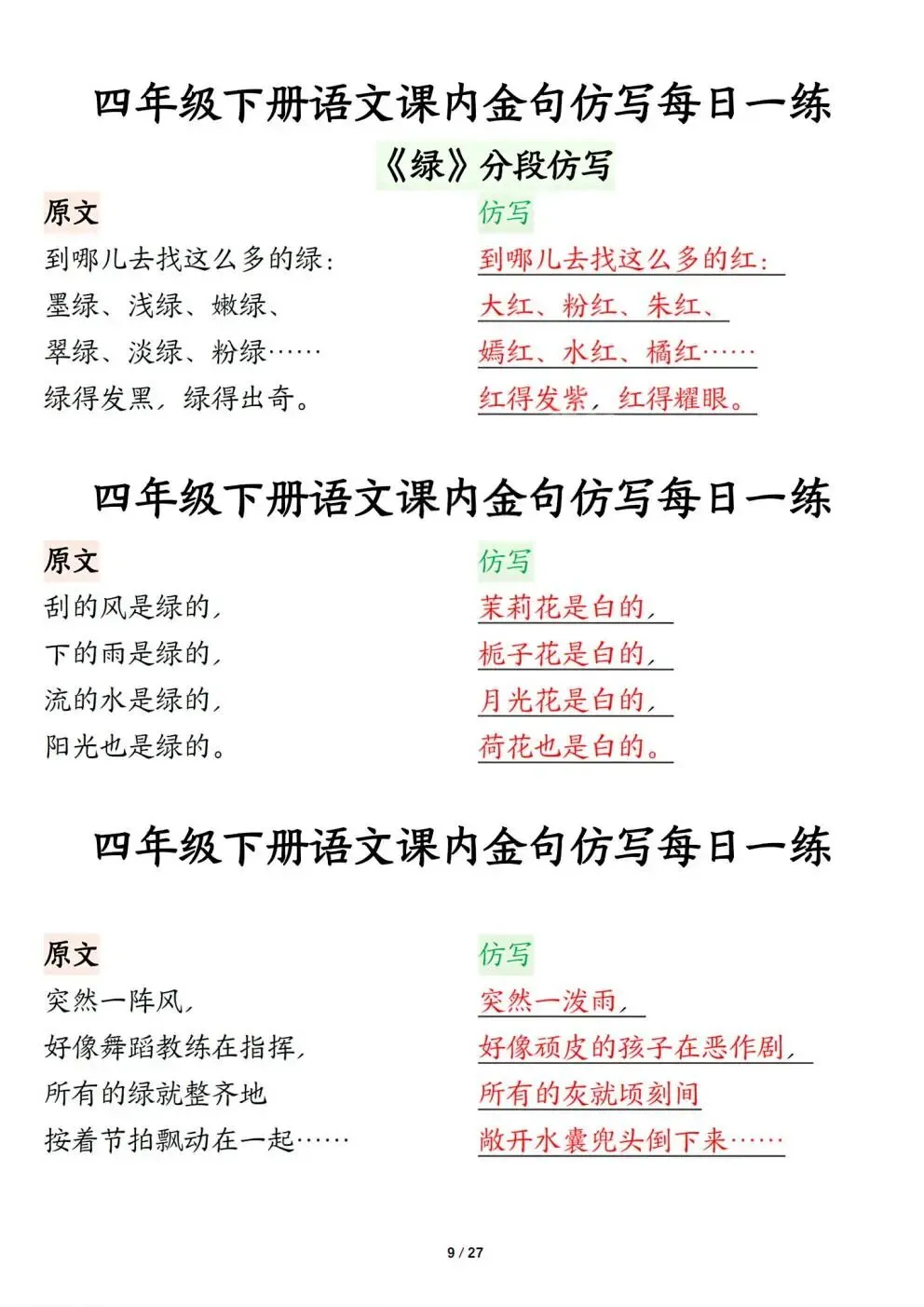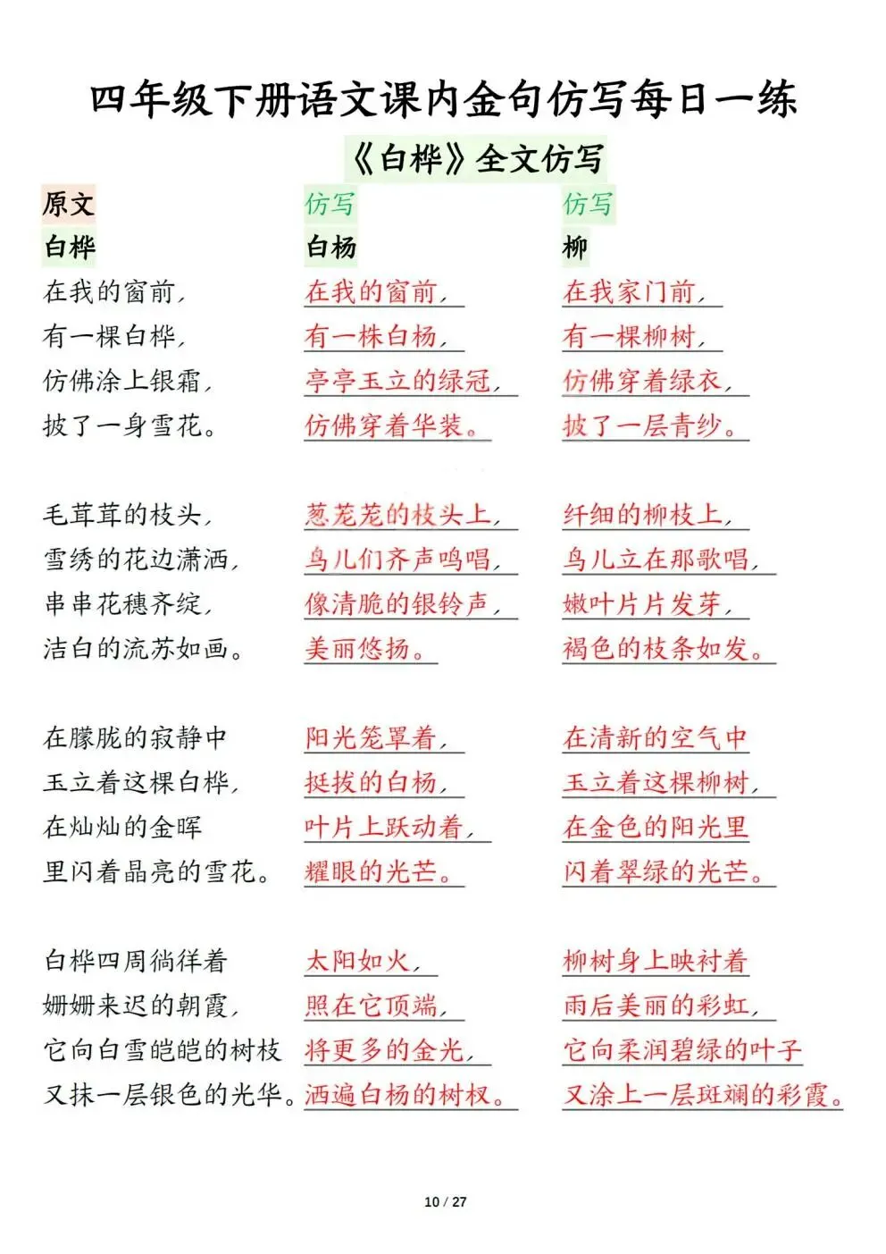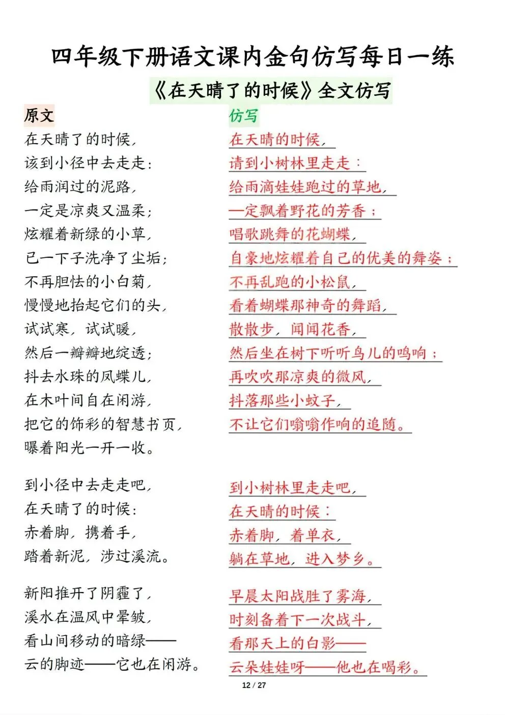 本站文章均为手工撰写未经允许谢绝转载:夜雨聆风 » 四年级下册语文课内仿写每日一练(空白电子版可打印)