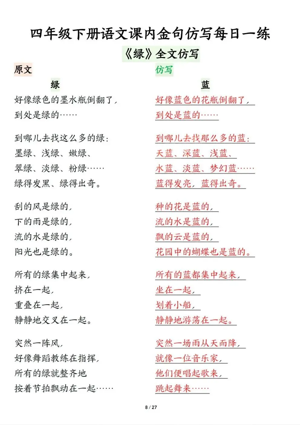 四年级下册语文课内仿写每日一练(空白电子版可打印)