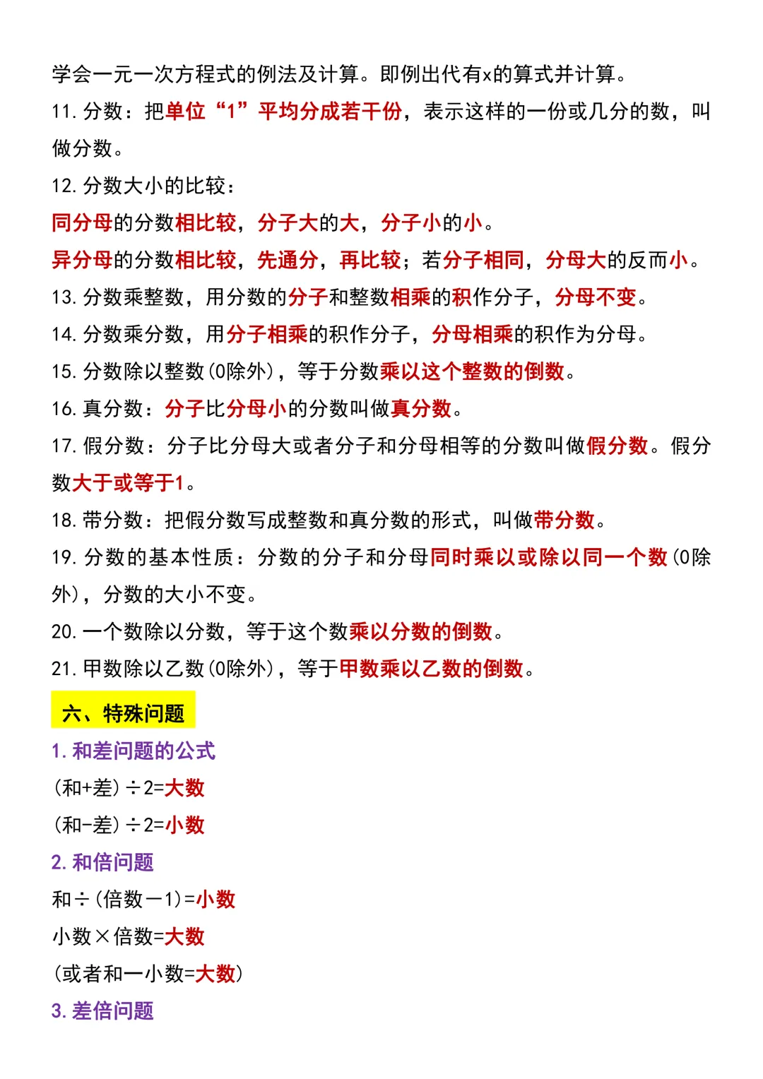 六年级下册数学重点必背公式概念汇总(电子版可打印)