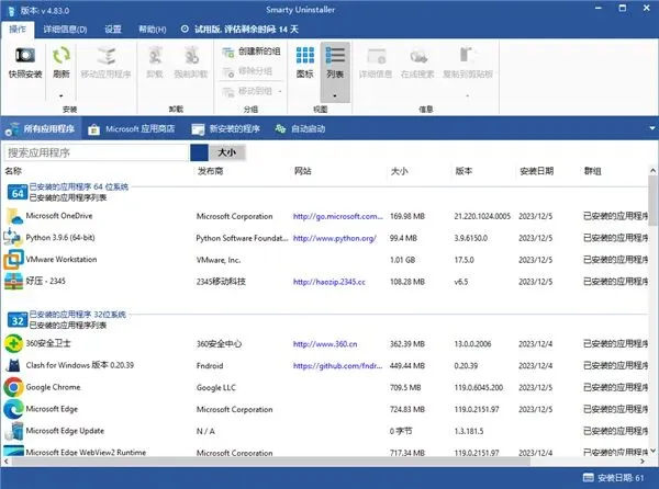 Smarty卸载用起来很简单,界面也现代,几下点击就能干掉不需要的应用,比标准添加/删除程序快多了。