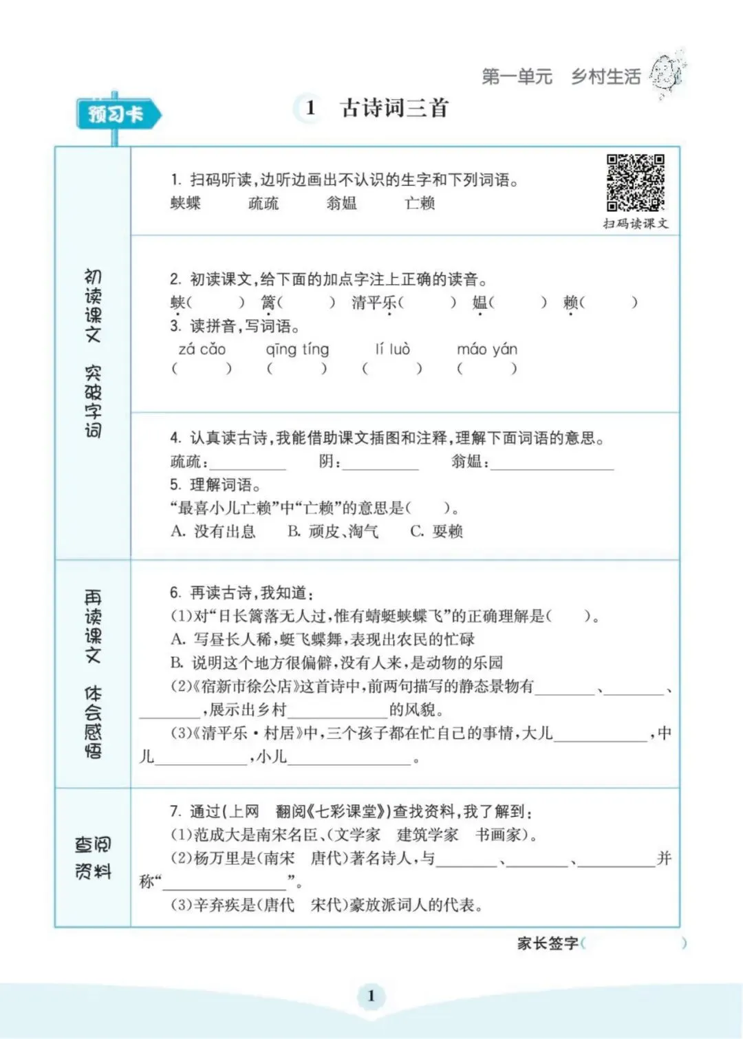 「26年语文1-6年级下册《每日一练小纸条》」