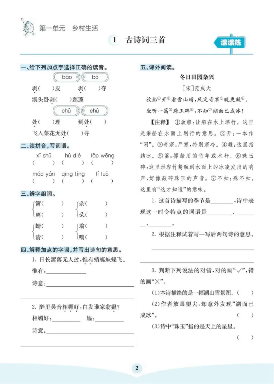 「26春语文《课堂笔记》1-6年级下册」
