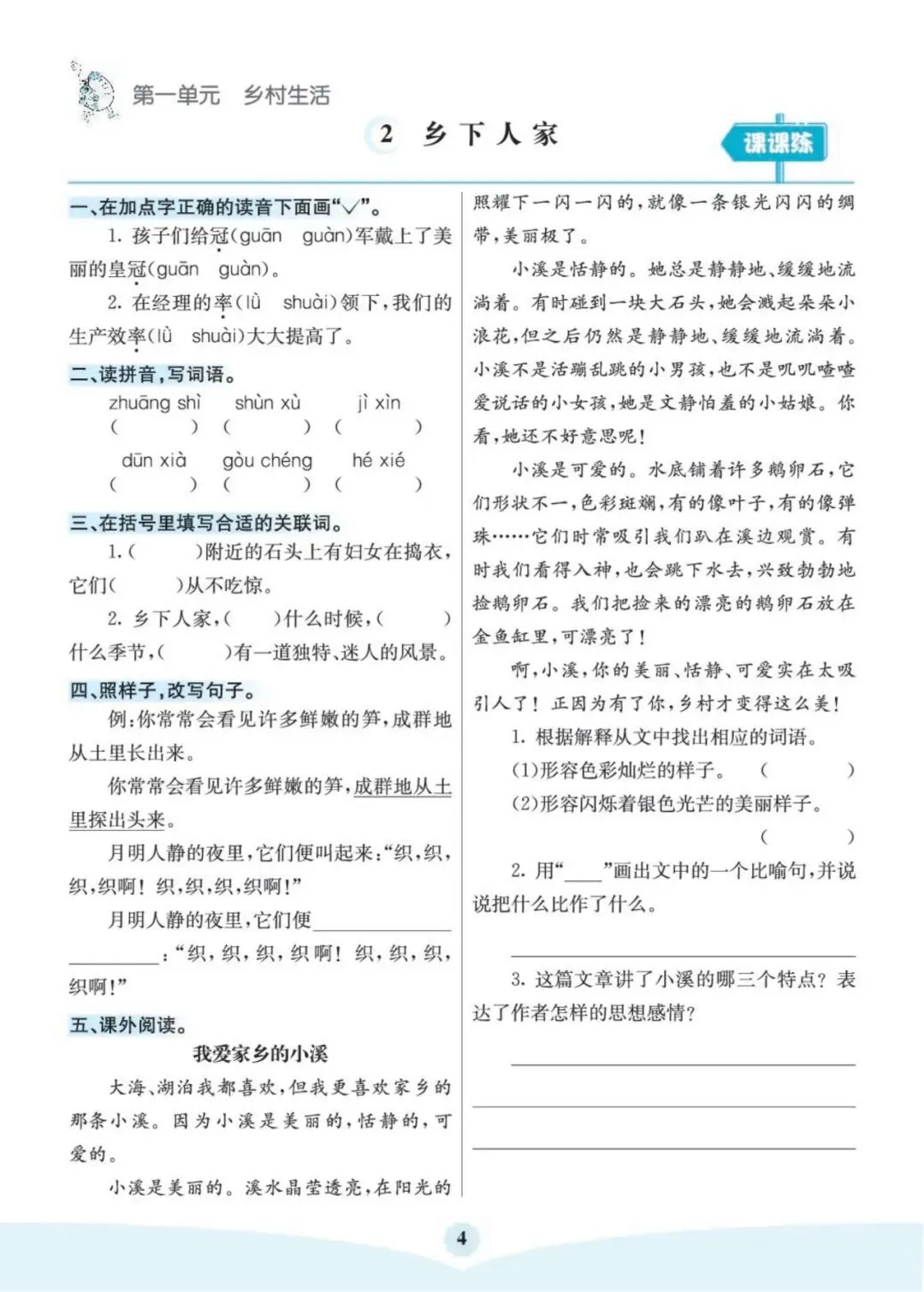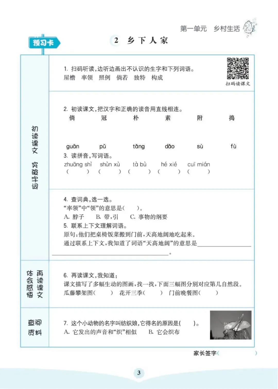 《语文5年级下册《预习卡+课课练》》可免费下载打印