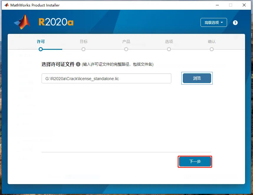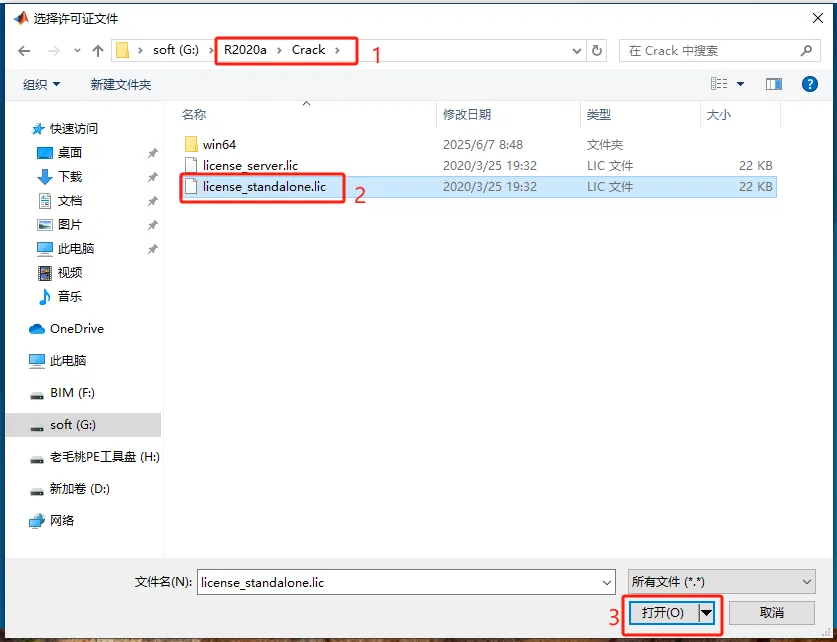 第九步:选择安装包解压后的【R2020a】文件夹中【Crack】文件夹下的【license_standalone.lic】文件,点击【打开】。